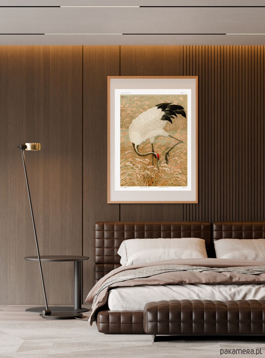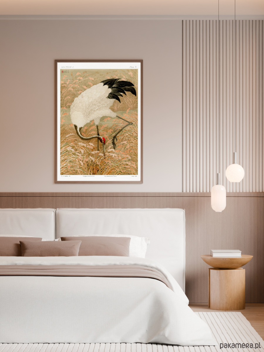 PLAKAT japoński, żuraw illustracja, dawna sztuka ścienna