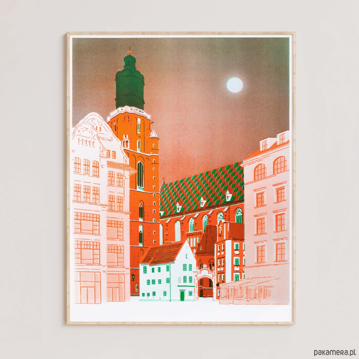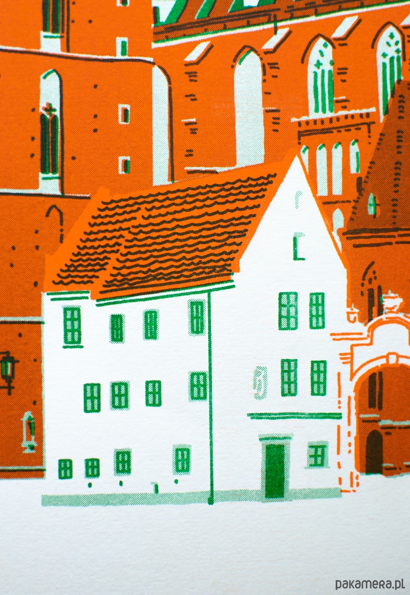 Pierwszy raz rysowałam ten widok na plenerze 11 lat temu. Dzisiaj wracam w to miejsce w grafice drukowanej w dwóch kolorach. Nie łatwo było oddać przestrzenność tego miejsca w tak ograniczonej technice, ale bez wyzwania nie ma funu. Chyba się udało.