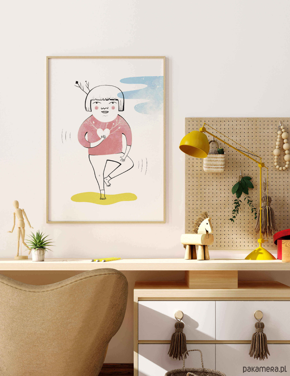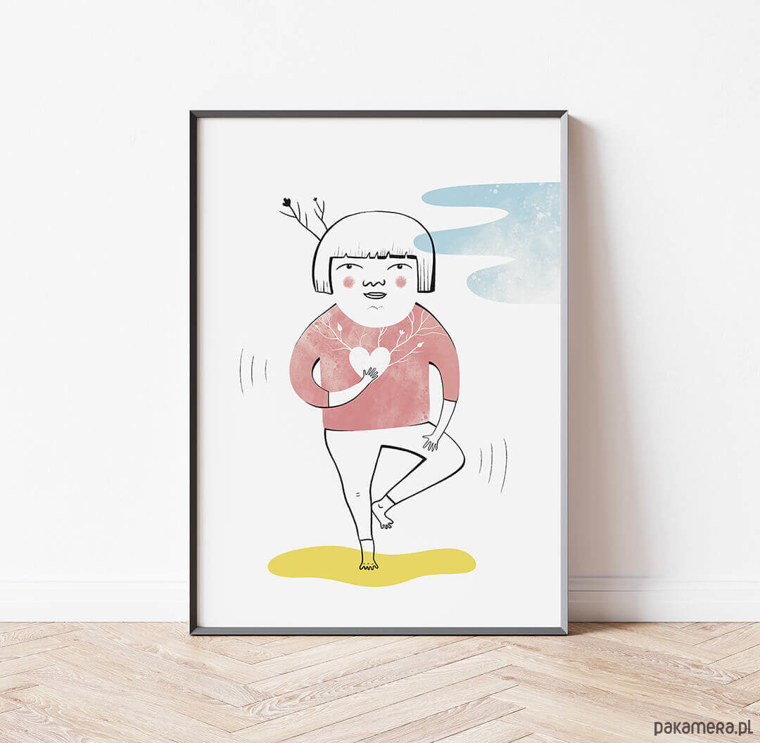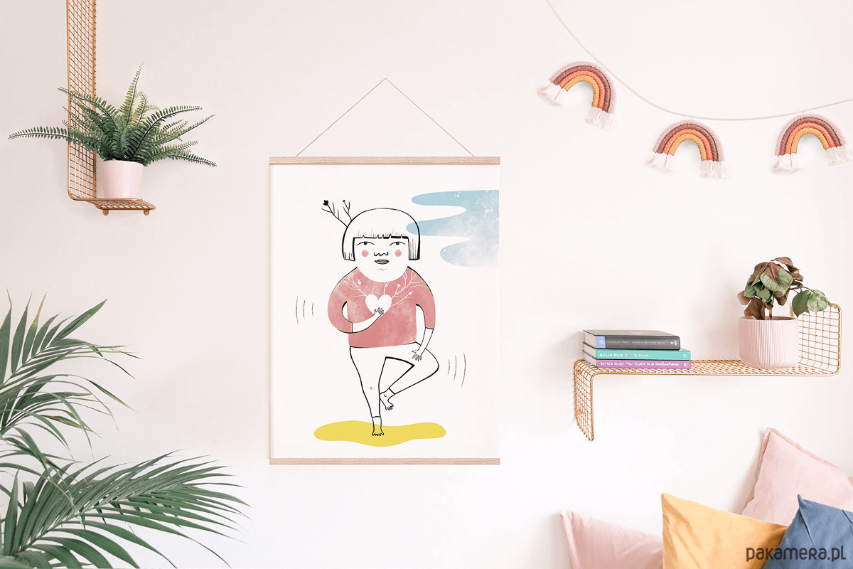 Lubisz jogę, a na myśl o asanach Twoja mata sama się rozwija? To świetnie! Powieś ten plakat na ścianie, niech wszyscy się dowiedzą jak bardzo kochasz się rozciągać! A może dopiero stawiasz pierwsze kroki? Tym bardziej powieś ten plakat na widoku – niech przypomina Ci o łapaniu balansu! Niech motywuje Cię do tych wszystkich skrętów i wygięć – ale wiesz, na spokojnie! Nie trzeba być od razu wielkim joginem. Czasami samo stanie na ziemi i czucie jej pod stopami to już spory wyczyn…