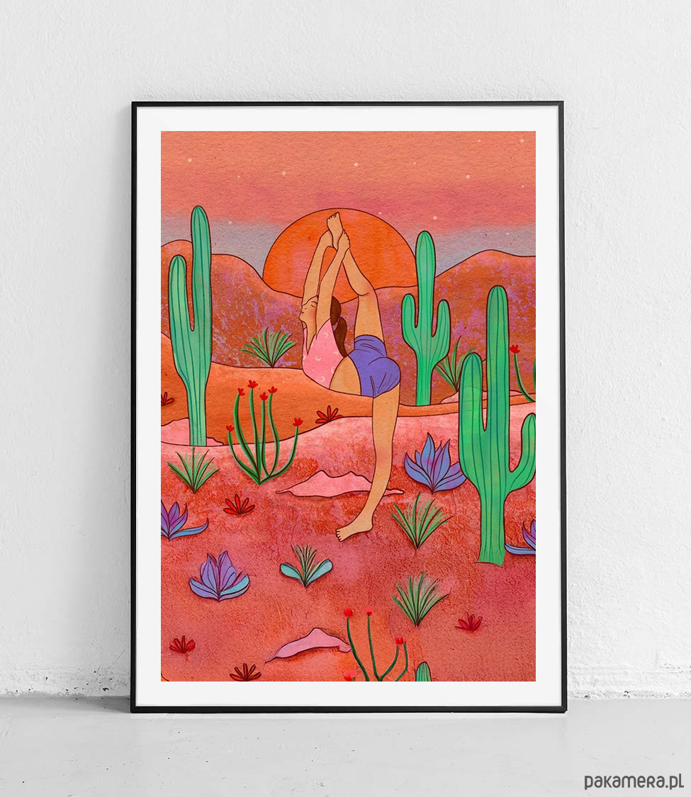 Plakat Joga wśród kaktusów