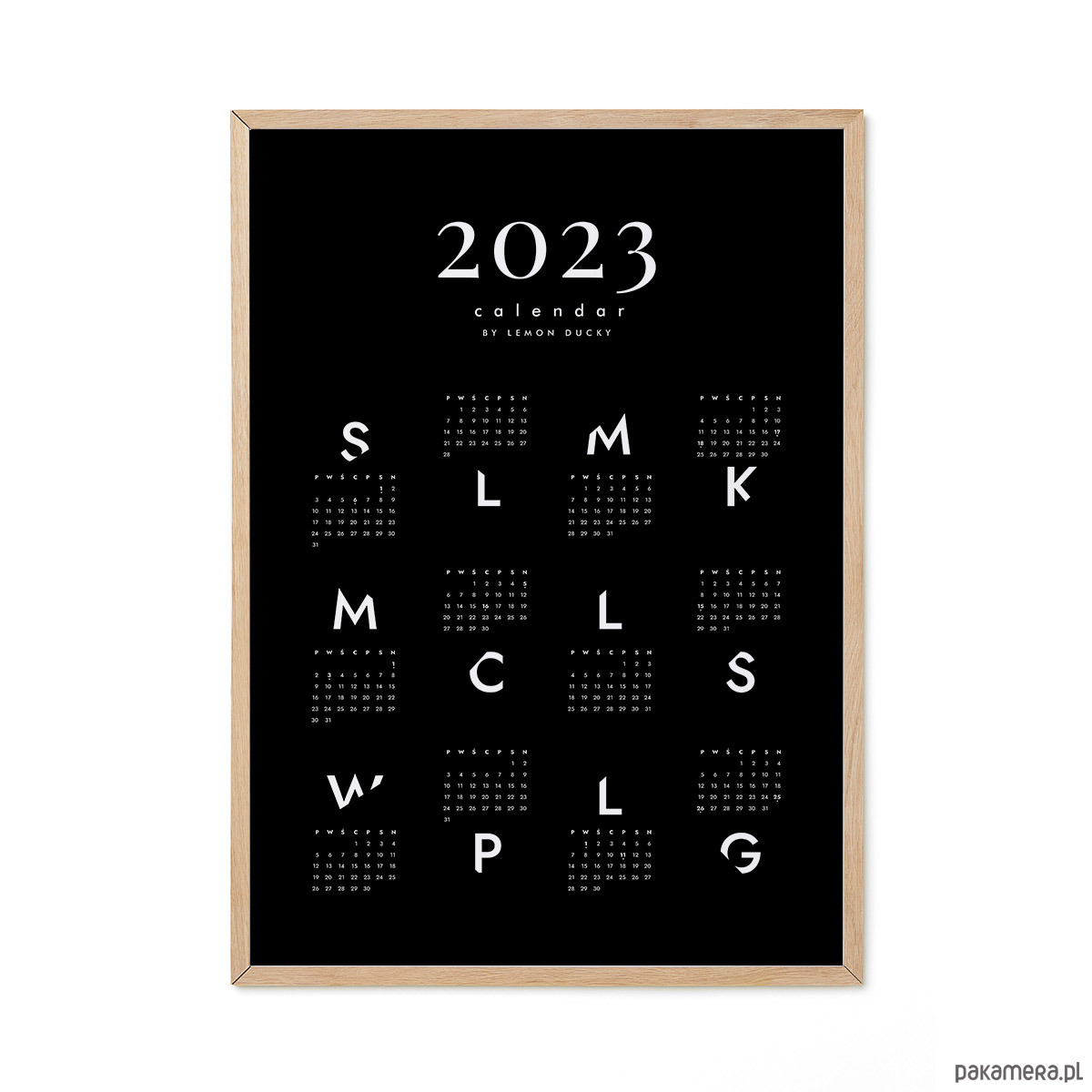 Kalendarz na rok 2023 z polskim układem dni tygodnia, z zaznaczonymi polskimi świętami.