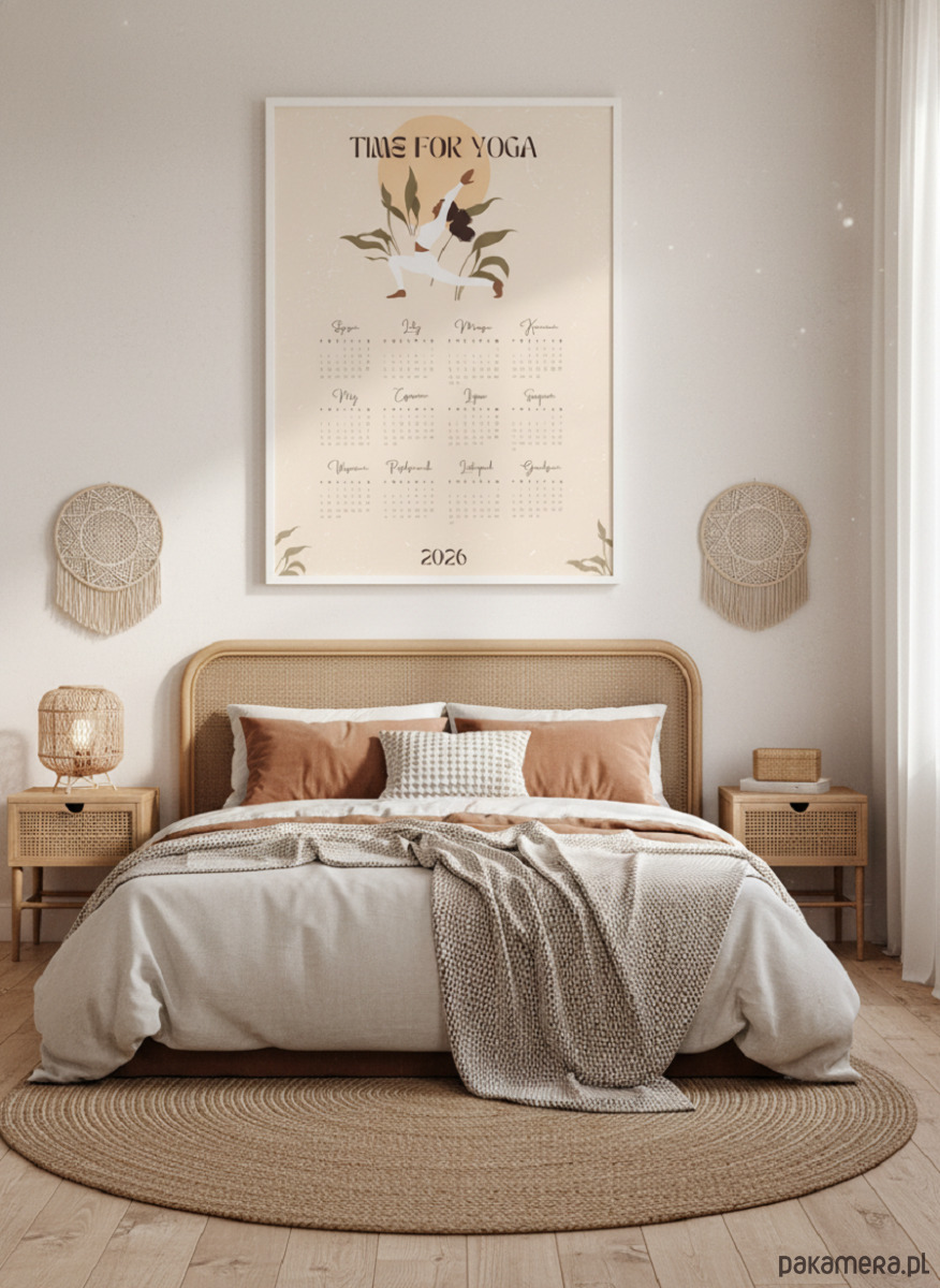 Autorskie KALENDARZE na 2026 rok W FORMIE PLAKATU (50x70 cm) to połączenie funkcjonalności i artystycznej ilustracji, stworzone z myślą o osobach ceniących estetykę, harmonię i piękno we wnętrzach. Każdy projekt inspirowany jest światem jogi, naturalną energią oraz spokojem, który płynie z uważności i codziennych rytuałów. Nowoczesna forma, subtelna paleta barw i symboliczne detale sprawiają, że kalendarze stają się nie tylko praktycznym dodatkiem, ale również dekoracją, która wprowadza do przestrzeni lekkość, równowagę i artystyczny klimat. Doskonale uzupełniają wnętrza w stylu minimalistycznym, boho, japandi, nowoczesnym czy wellness. Sprawdzą się w domu, biurze oraz w studio jogi.