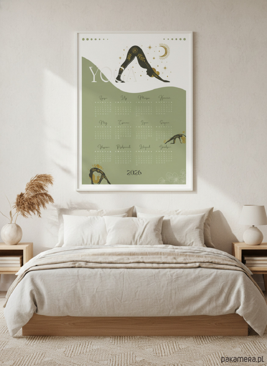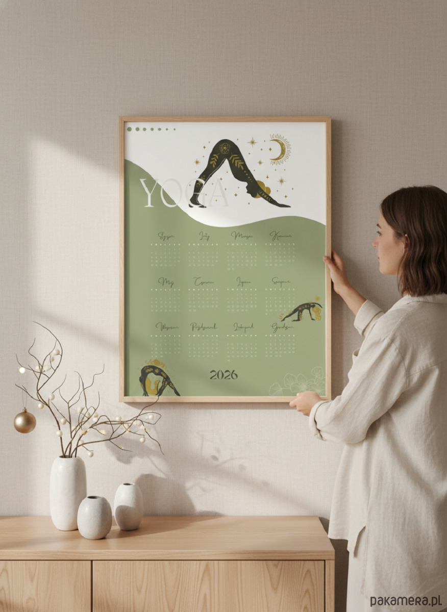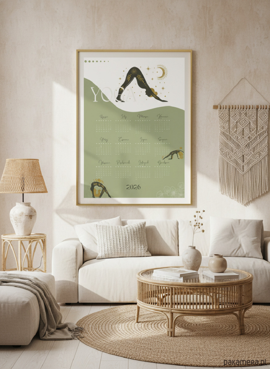 Autorskie KALENDARZE na 2026 rok W FORMIE PLAKATU (50x70 cm) to połączenie funkcjonalności i artystycznej ilustracji, stworzone z myślą o osobach ceniących estetykę, harmonię i piękno we wnętrzach. Każdy projekt inspirowany jest światem jogi, naturalną energią oraz spokojem, który płynie z uważności i codziennych rytuałów. Nowoczesna forma, subtelna paleta barw i symboliczne detale sprawiają, że kalendarze stają się nie tylko praktycznym dodatkiem, ale również dekoracją, która wprowadza do przestrzeni lekkość, równowagę i artystyczny klimat. Doskonale uzupełniają wnętrza w stylu minimalistycznym, boho, japandi, nowoczesnym czy wellness. Sprawdzą się w domu, biurze oraz w studio jogi.