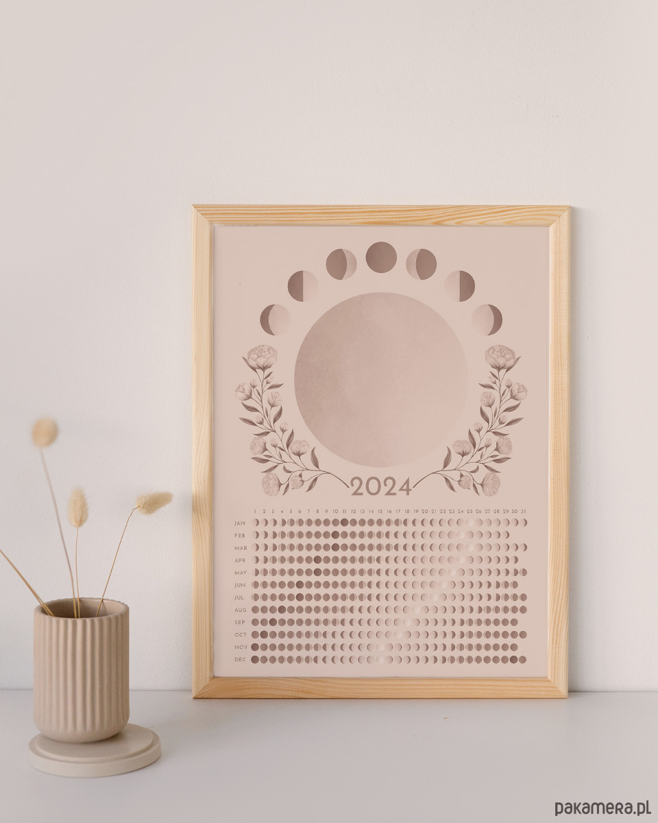 Plakat Kalendarz księżycowy 2024 jasny A3