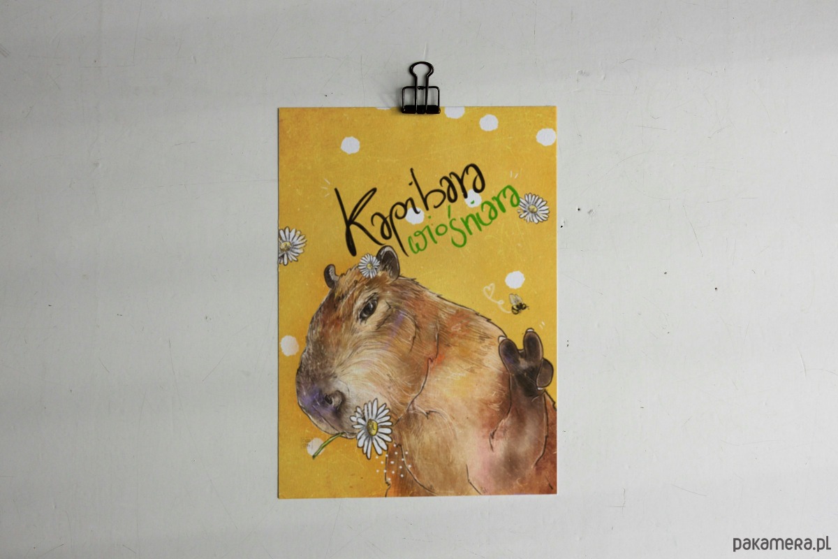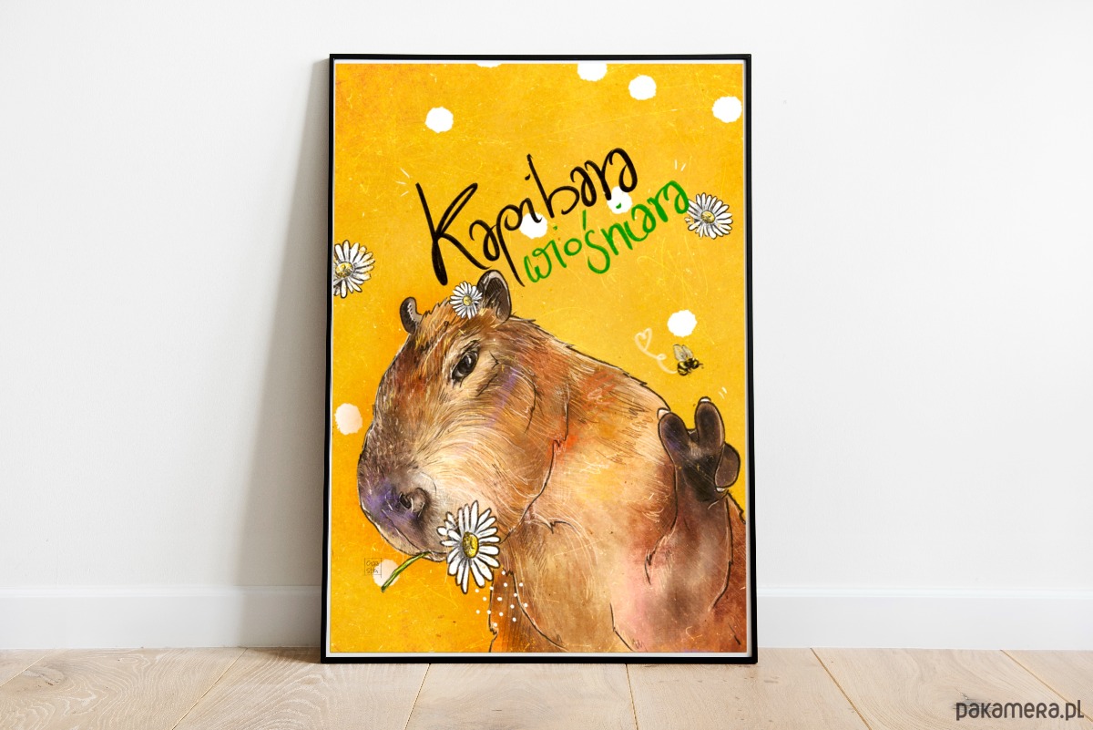 "Kapibara wiośniara" to autorska grafika, która rozbawi i rozczuli każdego, kto lubi świat zwierząt.