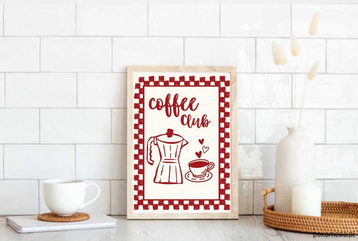 PLAKAT kawa, coffee club, rysunek do kuchni, grafika dla kawosza