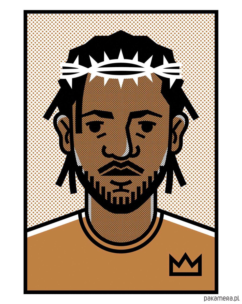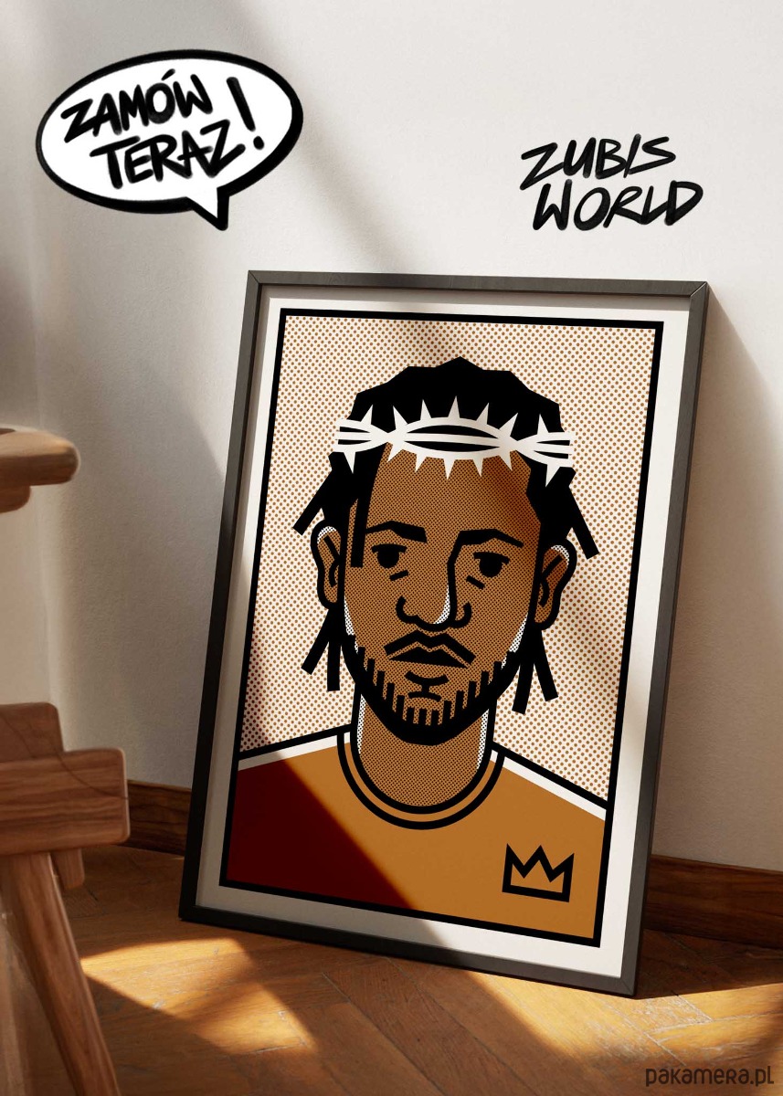 Artystyczna interpretacja Kendricka Lamara, jednego z najważniejszych współczesnych raperów. Dynamiczne linie, wyraziste kolory i kompozycja oddają jego twórczy charakter oraz wpływ na kulturę hip-hopową.