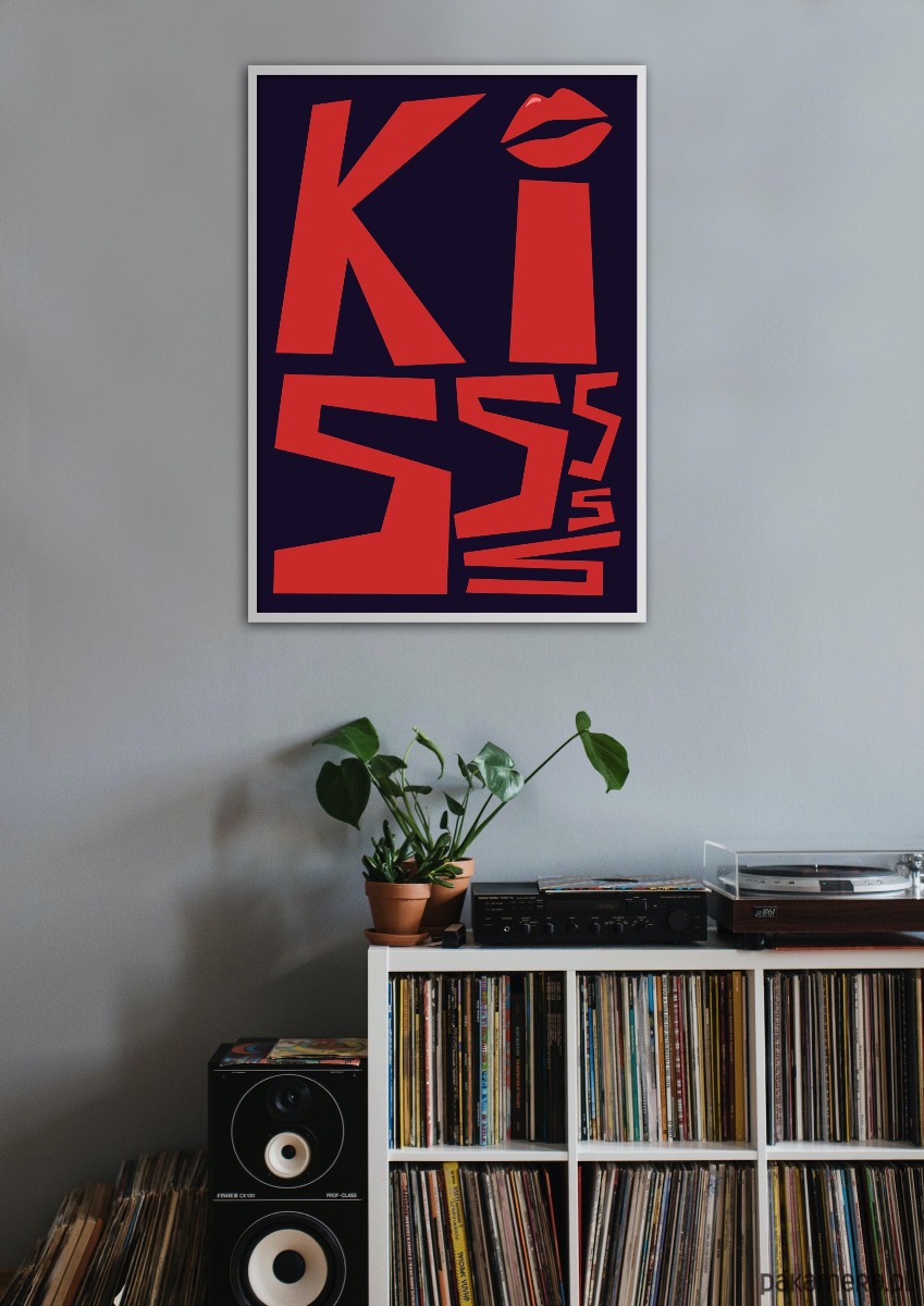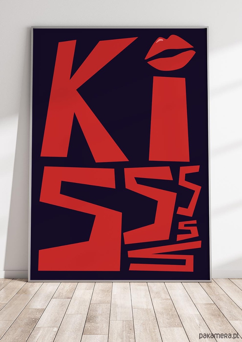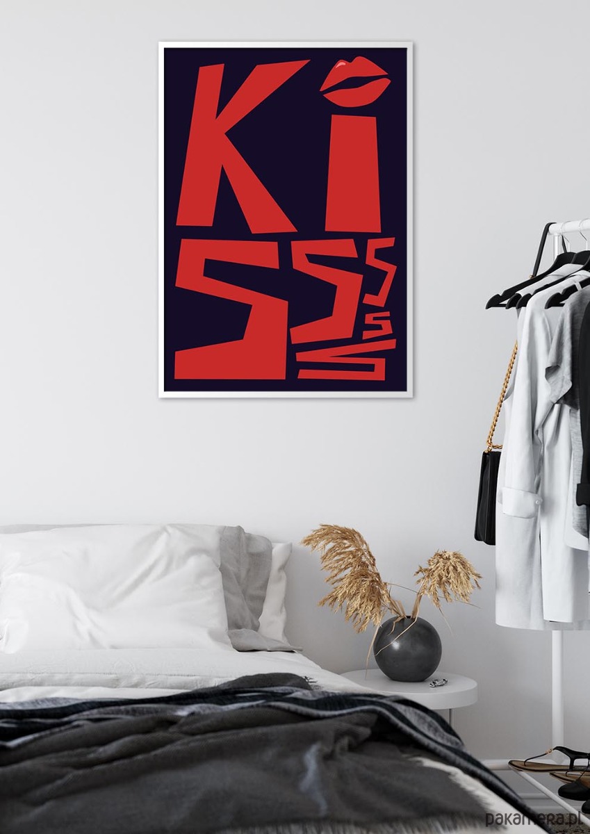 Minimalistyczna forma liter oraz symbol ust sprawiają, że praca jest jednocześnie odważna, stylowa i dekoracyjna. To idealny wybór dla osób ceniących nowoczesną sztukę, typografię i wyraziste akcenty we wnętrzach.