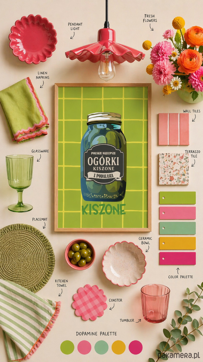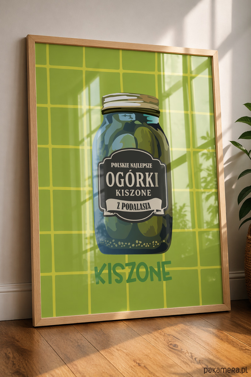 Od razu przyciąga wzrok. Motyw słoika ogórków jest prosty, rozpoznawalny i podany w nowoczesnej, graficznej formie, dzięki czemu wnętrze nabiera wyrazu.