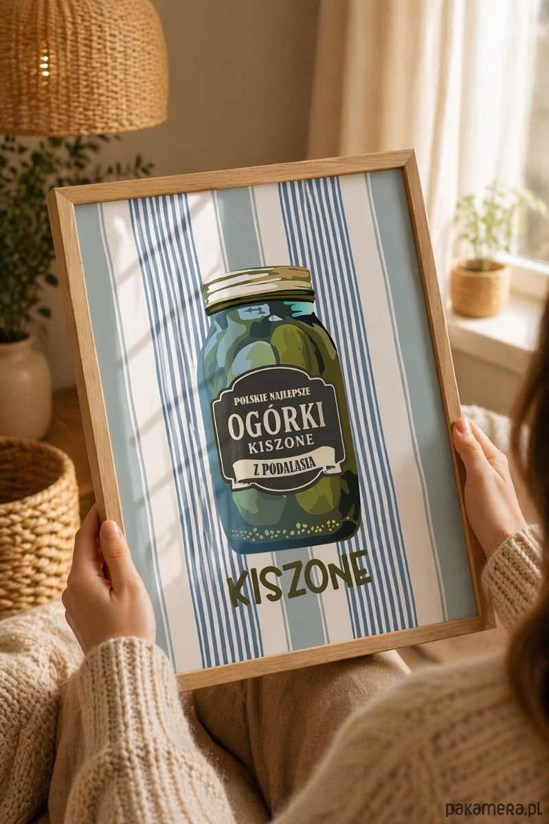 Od razu przyciąga wzrok. Motyw słoika ogórków jest prosty, rozpoznawalny i podany w nowoczesnej, graficznej formie, dzięki czemu wnętrze nabiera wyrazu.