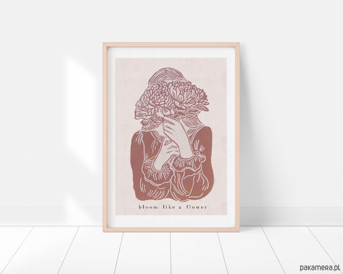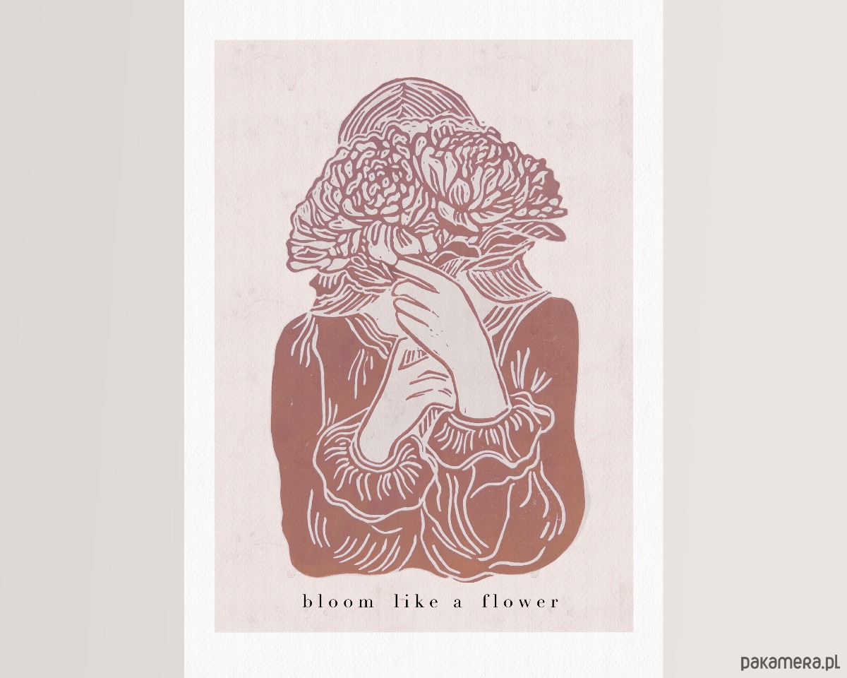 Grafika przedstawiająca kobietę z kwiatami będzie idealnym prezentem dla wyjątkowych kobiet lub kobiecą dekoracją wnętrz.