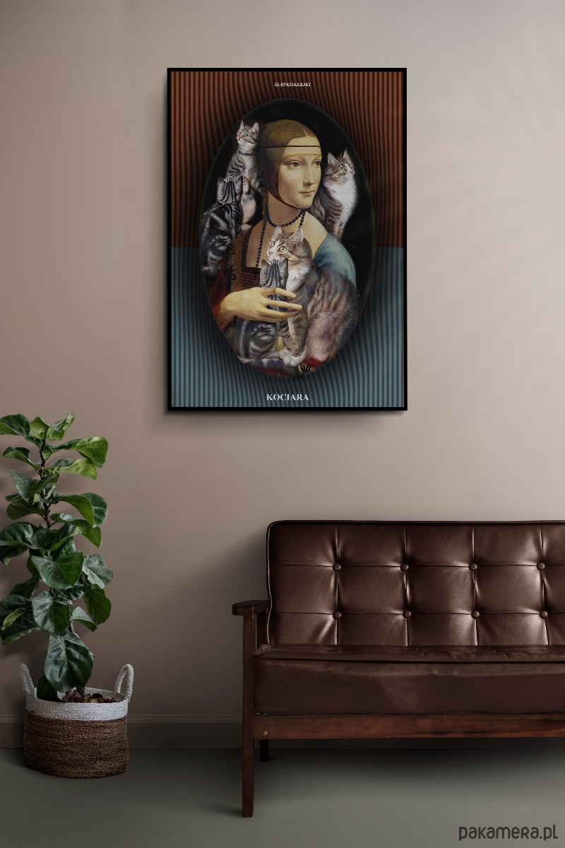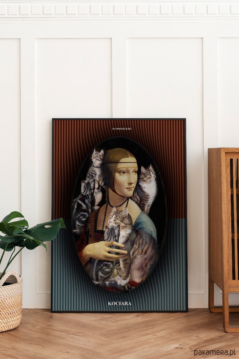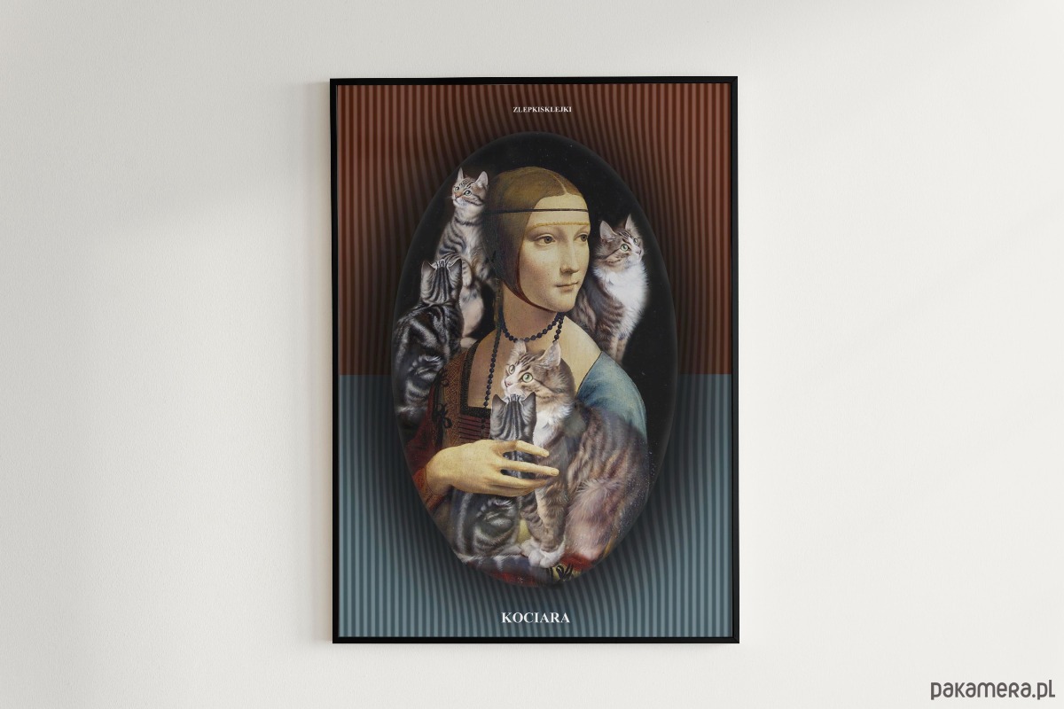 Ten plakat to nie tylko dekoracja — to portret duszy kociary, która łączy w jednym spojrzeniu: