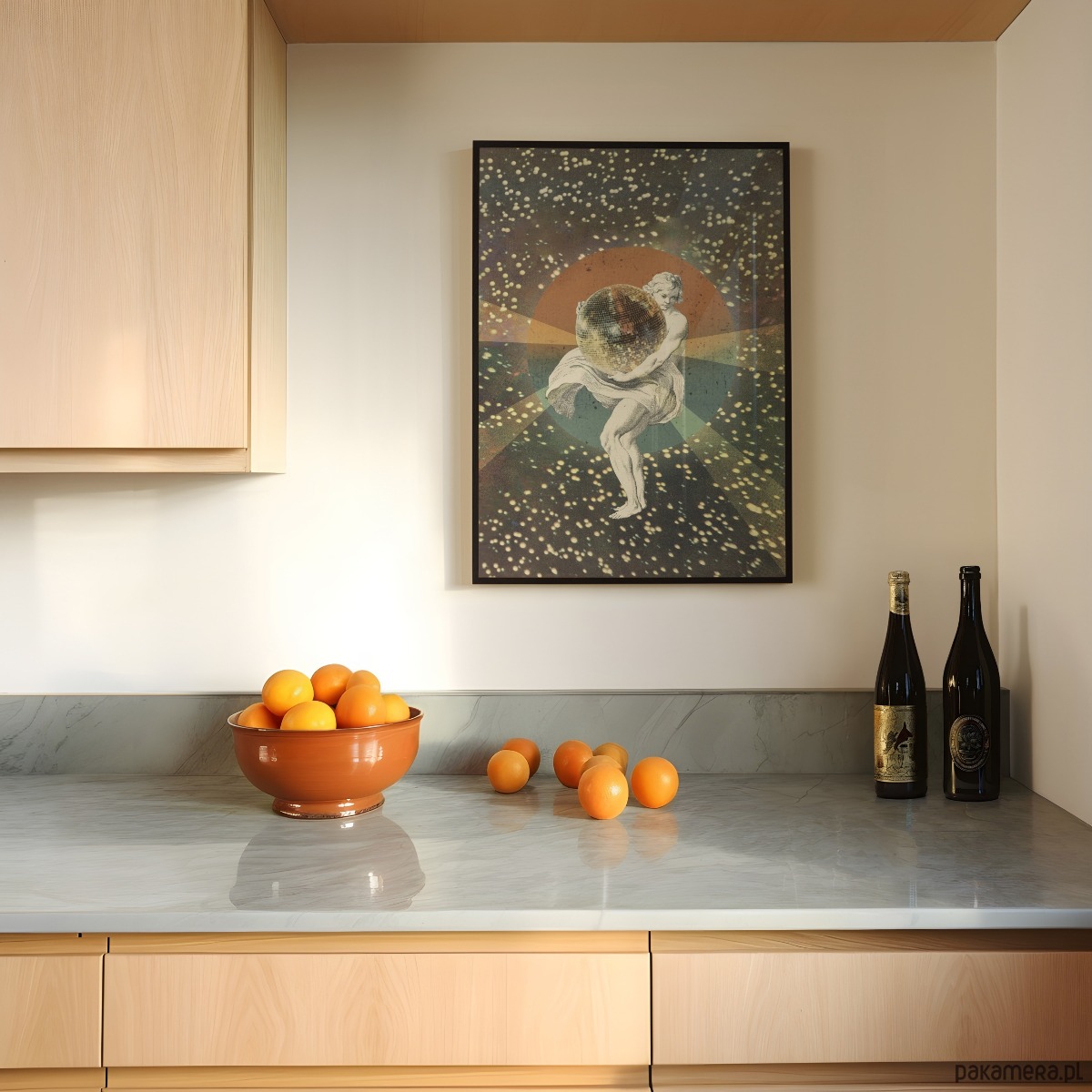 Wydruk autorskiego kolażu cyfrowego na wysokiej jakości matowym papierze 230g.