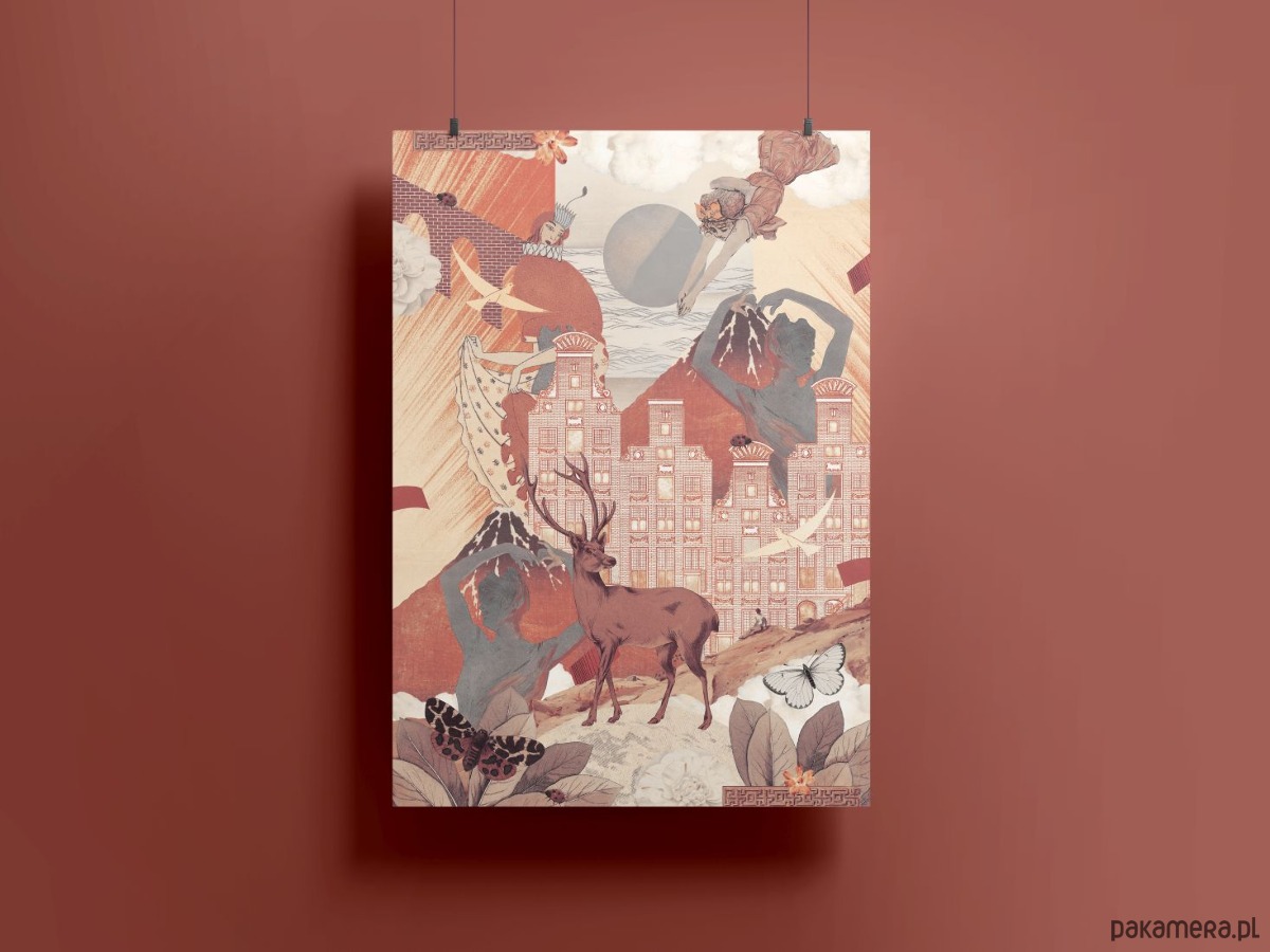 Wydruk autorskiego kolażu cyfrowego na wysokiej jakości matowym papierze 230g.