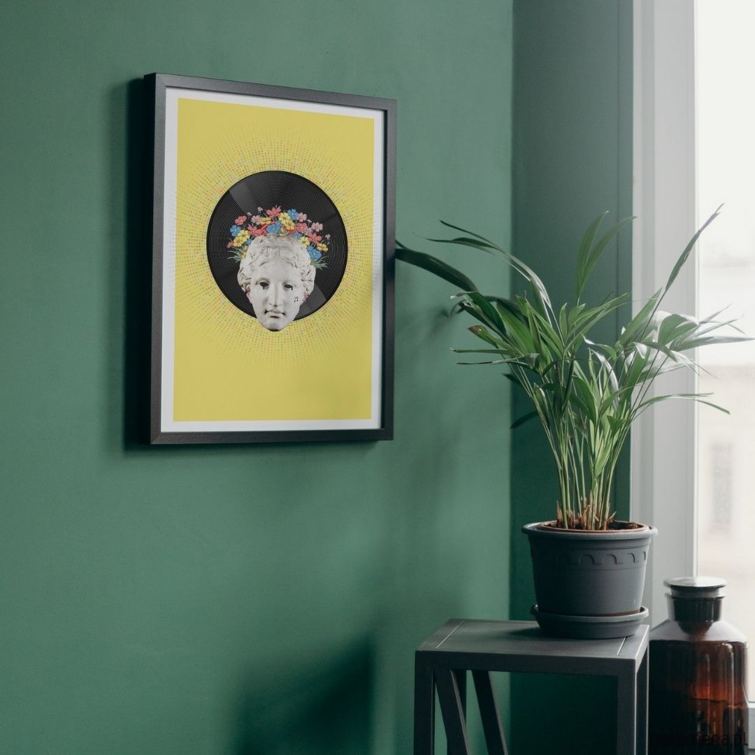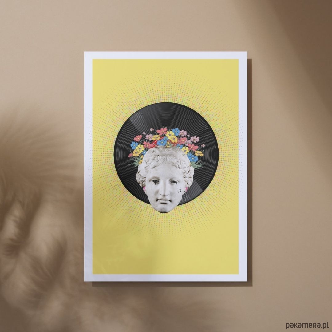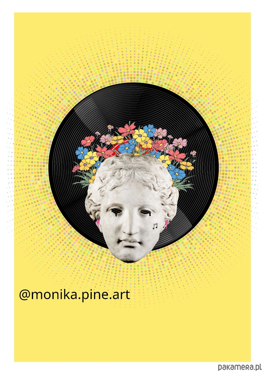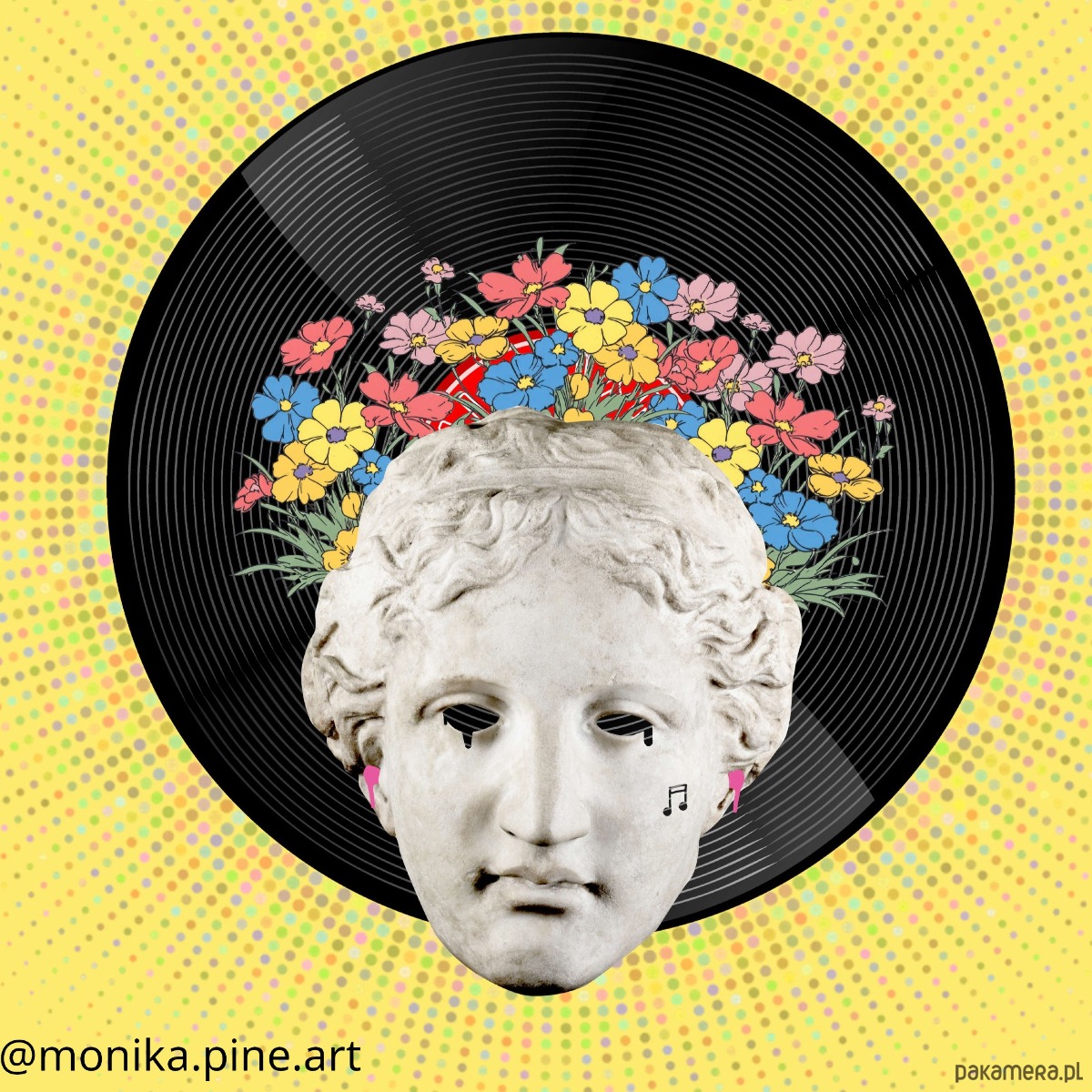 Kolaż opowiada o intymnej przestrzeni jaką tworzy muzyka. Ciepłe, żółte tło pulsuje letnim spokojem i energią, które pojawiają się, gdy ulubiony utwór trafia dokładnie w punkt. W centrum znajduje się posągowa kobieca twarz, klasyczna, wyciszona, medytacyjna. Jej spojrzenie pozostaje wycofane, cała uwaga skierowana jest do wnętrza. Nie mogło zabraknąć też winylowej aureoli.