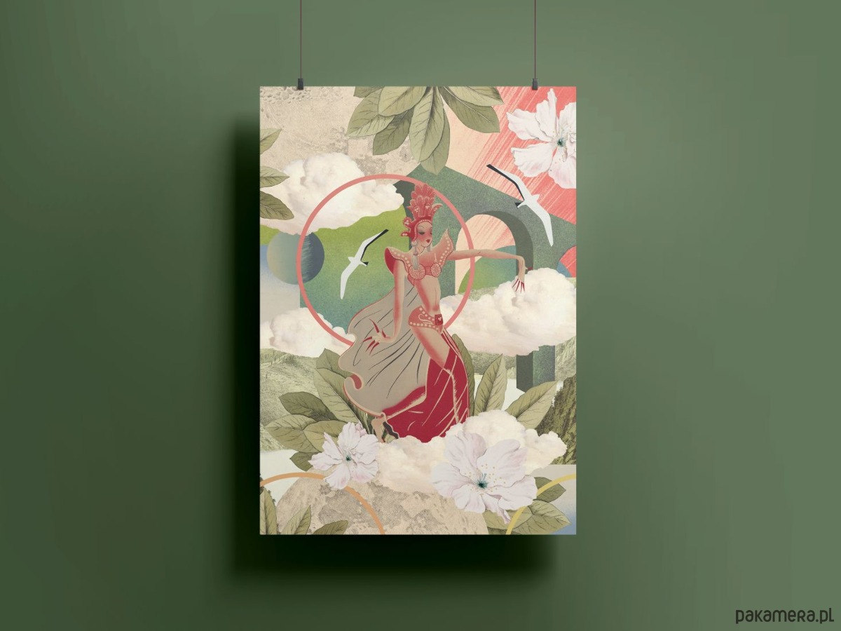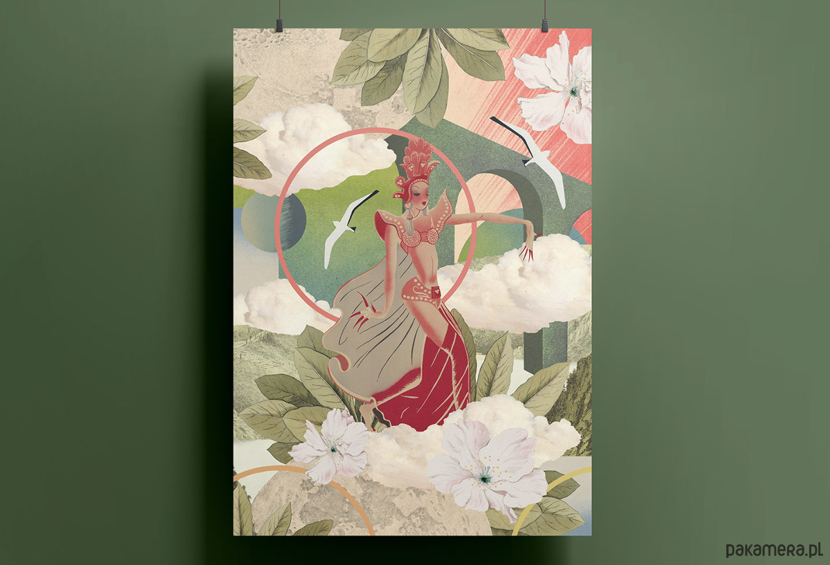 Wydruk autorskiego kolażu cyfrowego na wysokiej jakości matowym papierze 230g.