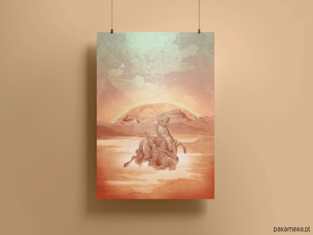 Wydruk autorskiego kolażu cyfrowego na wysokiej jakości matowym papierze 230g.