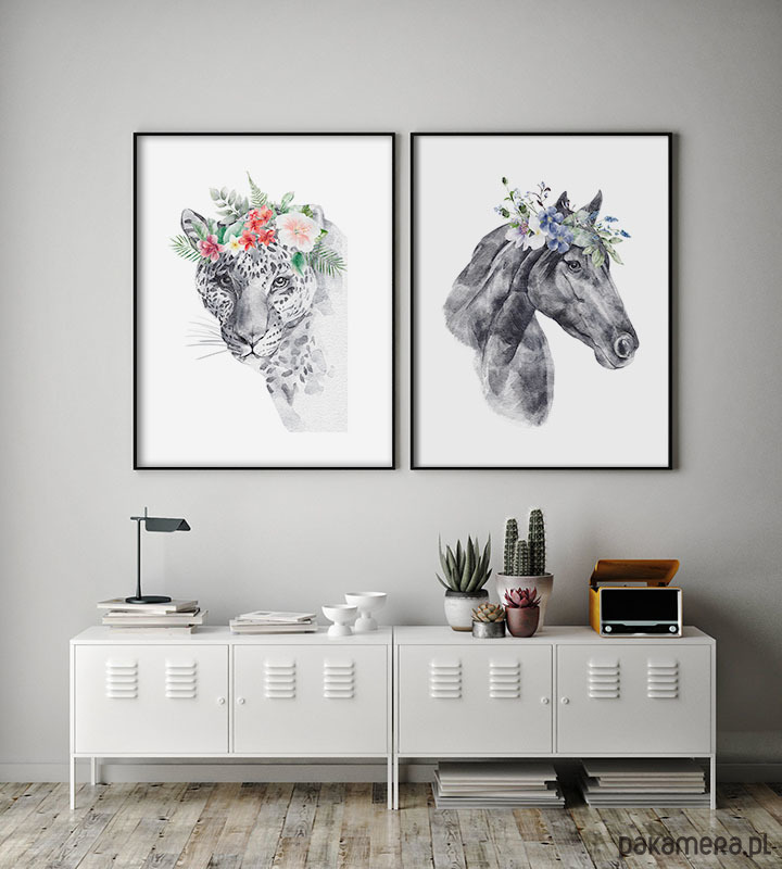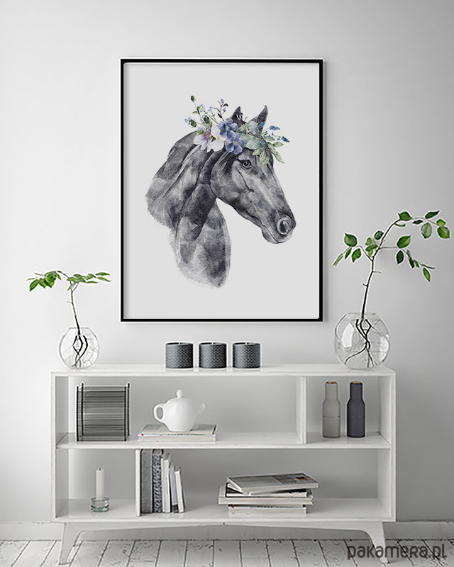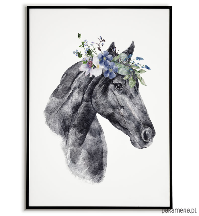 Plakat przedstawiający postać KONIA z wiankiem na głowie, przepiękny plakat urozmaici wnętrze każdego domu.