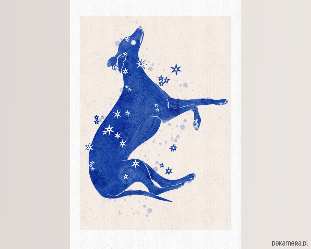 Plakat będzie idealnym prezentem dla miłośników psów i astrologii.