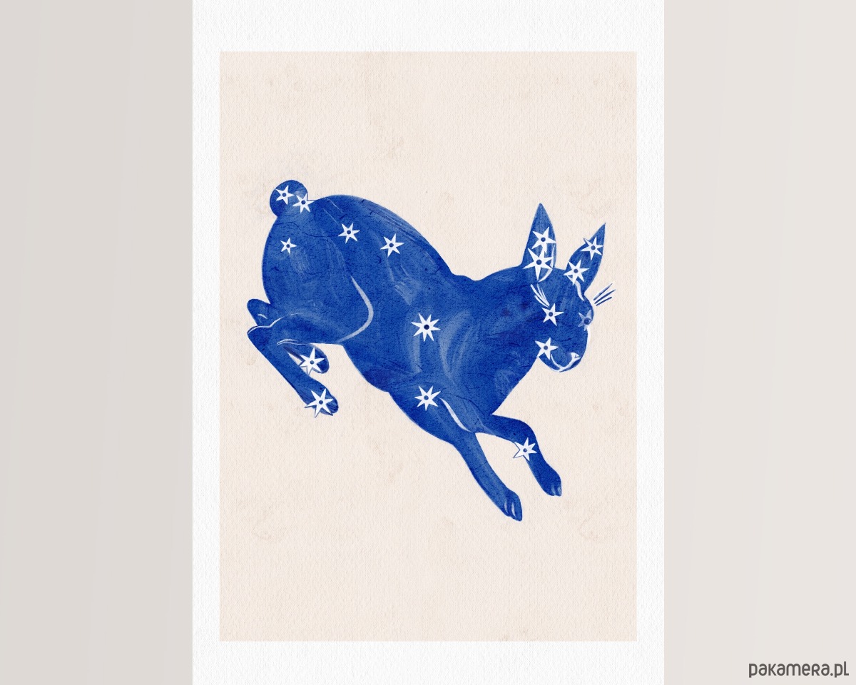 Minimalistyczny rysunek przedstawiający konstelację gwiezdną zająca „Lepus”
