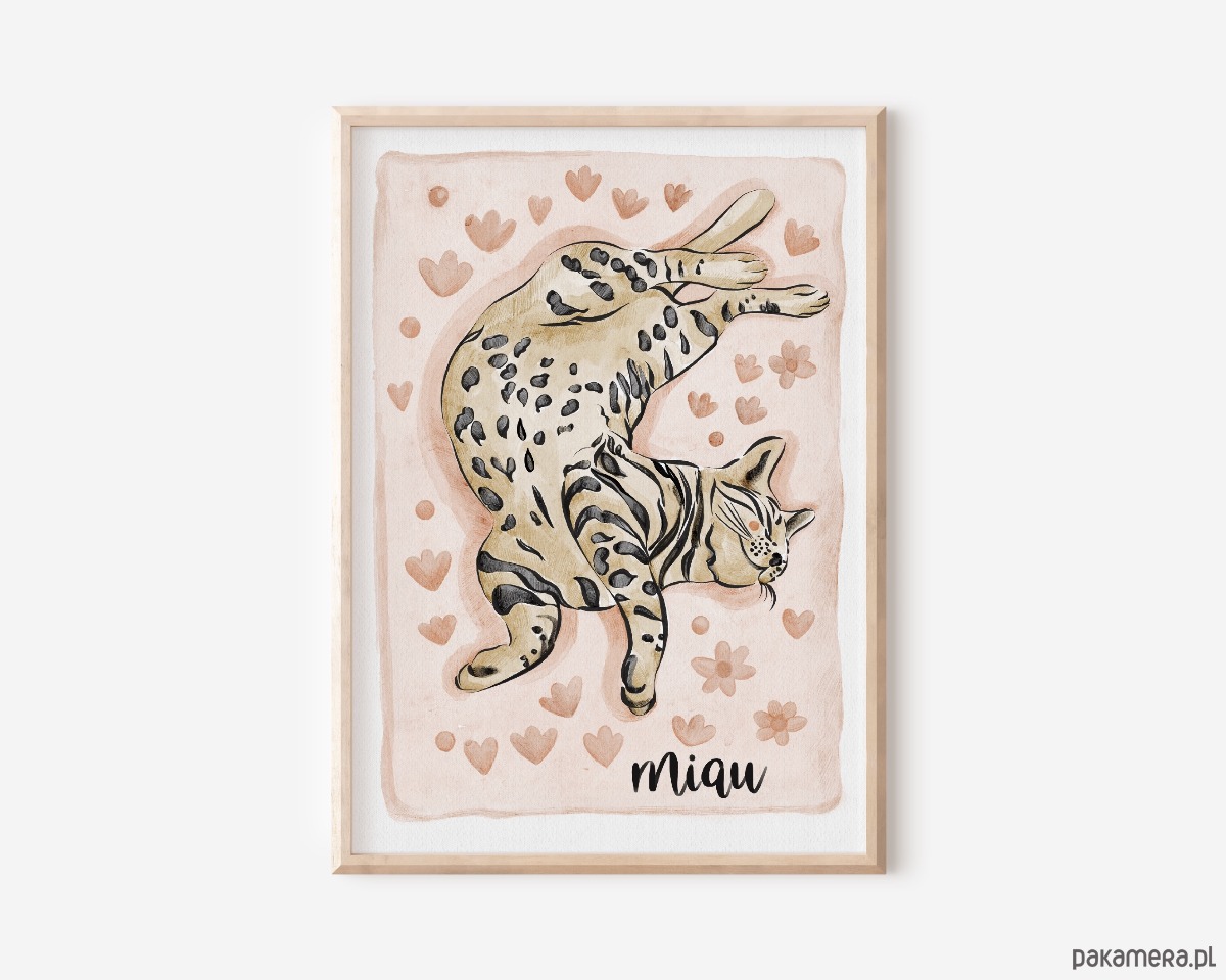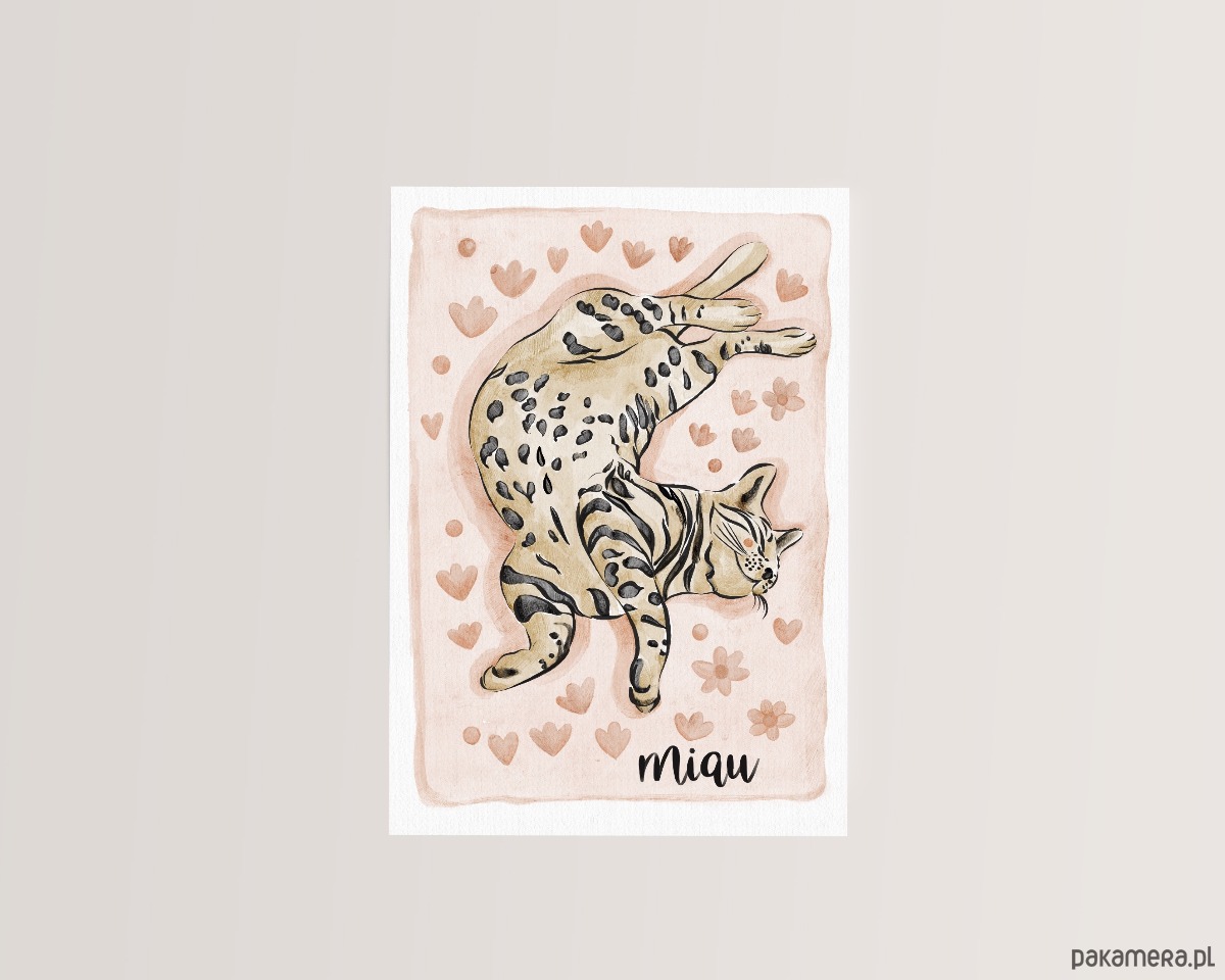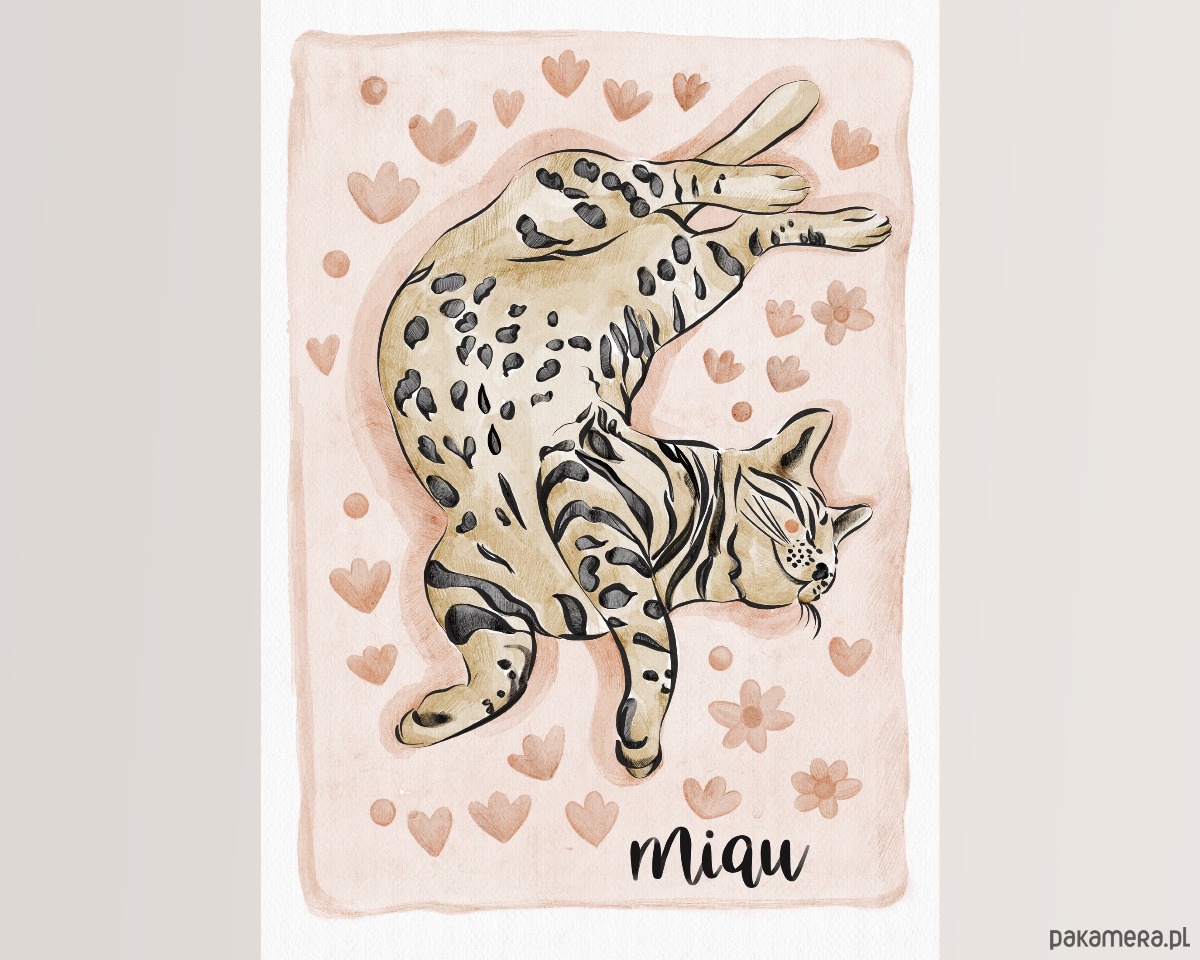 Grafika przedstawiająca leżącego kotka będzie idealnym prezentem dla miłośników kotków.