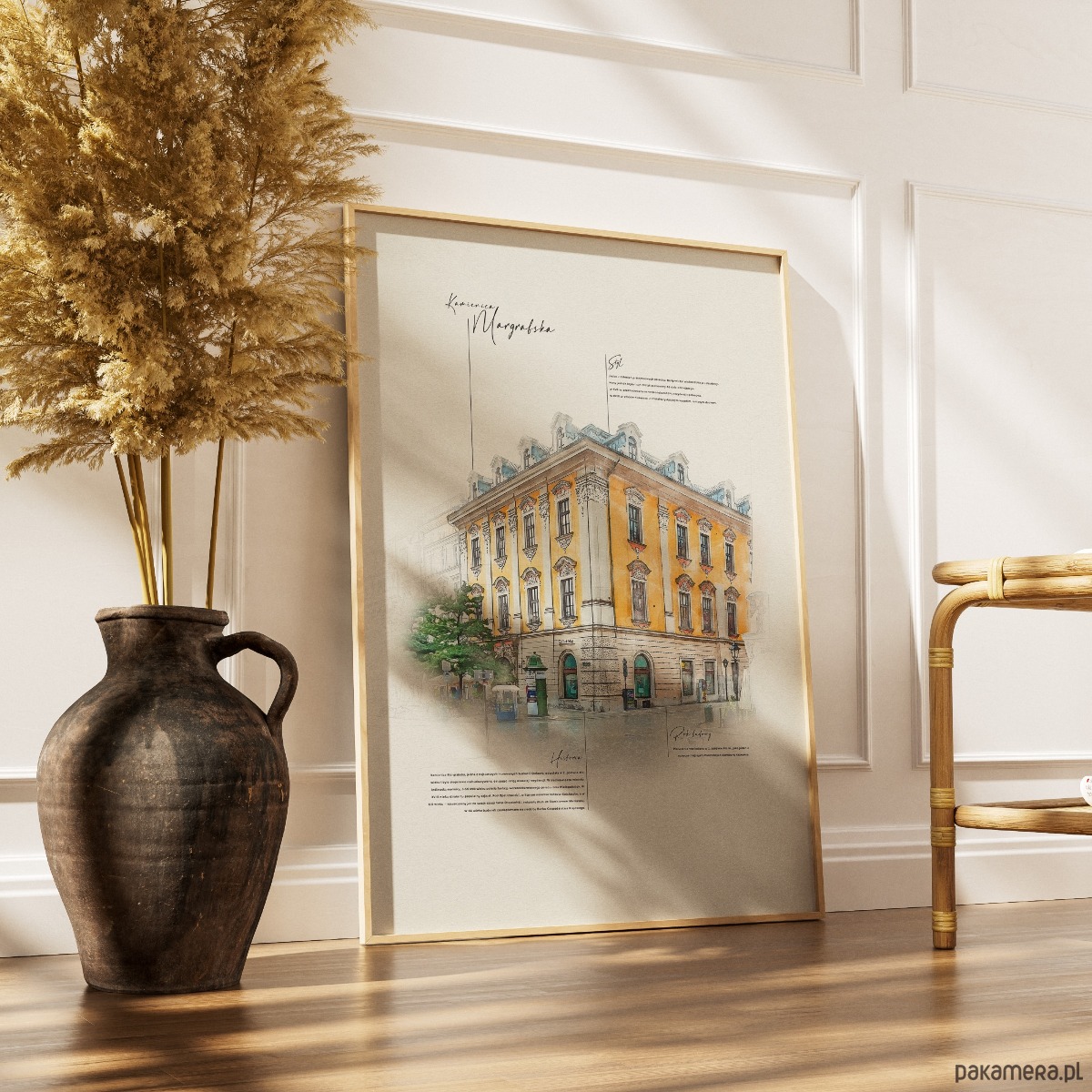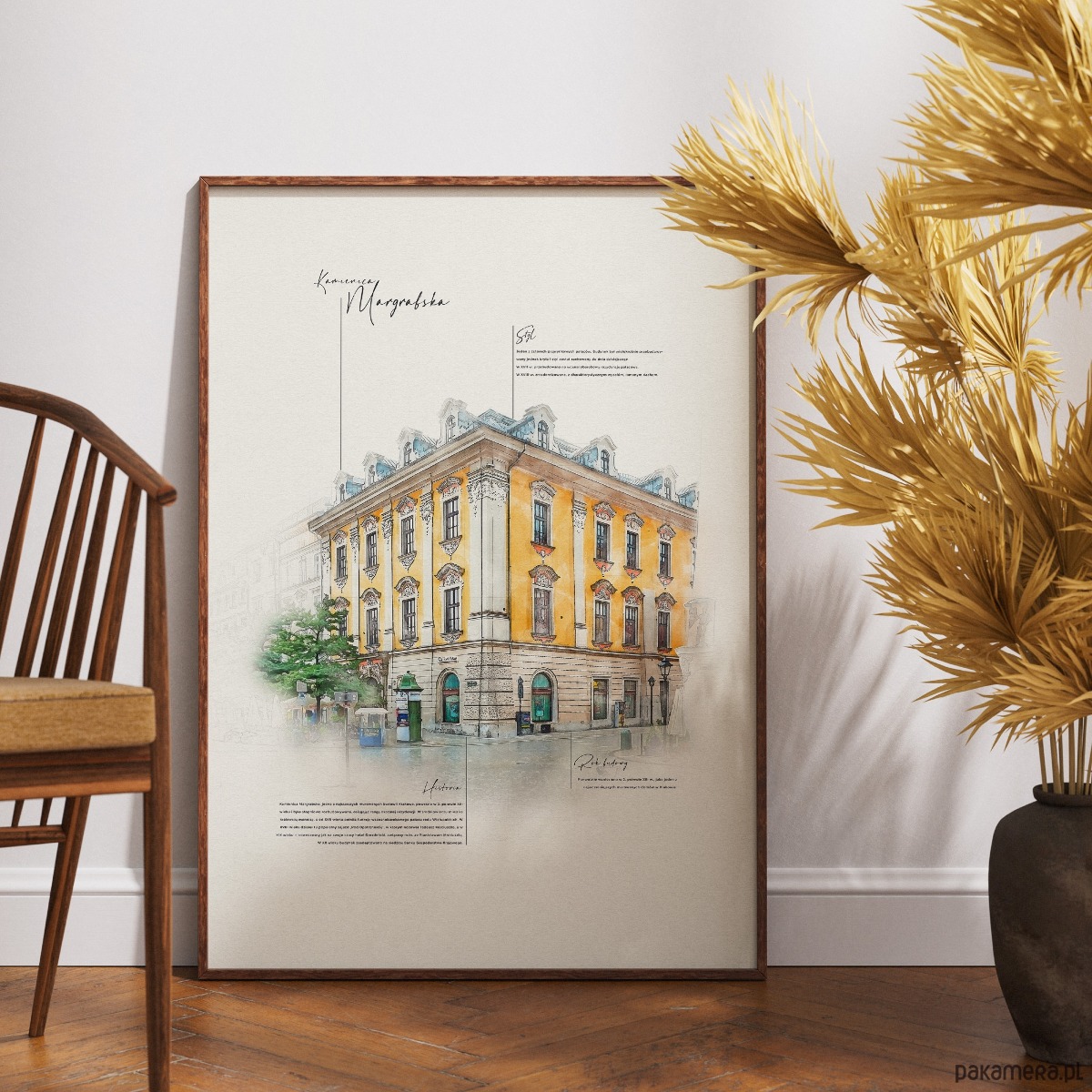 Plakat z zabytkową kamienicą Krakowa - Kamienica Margrabska.