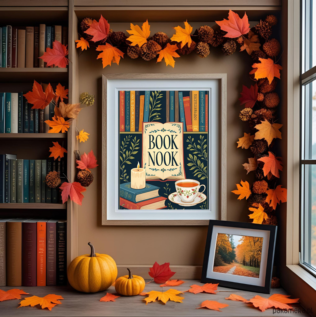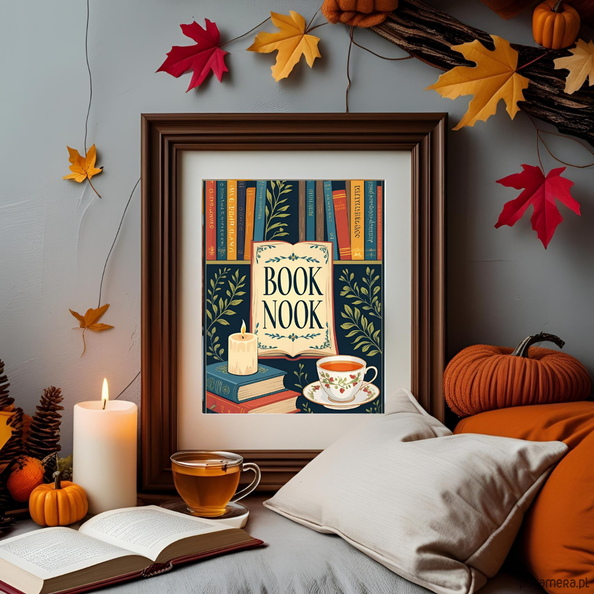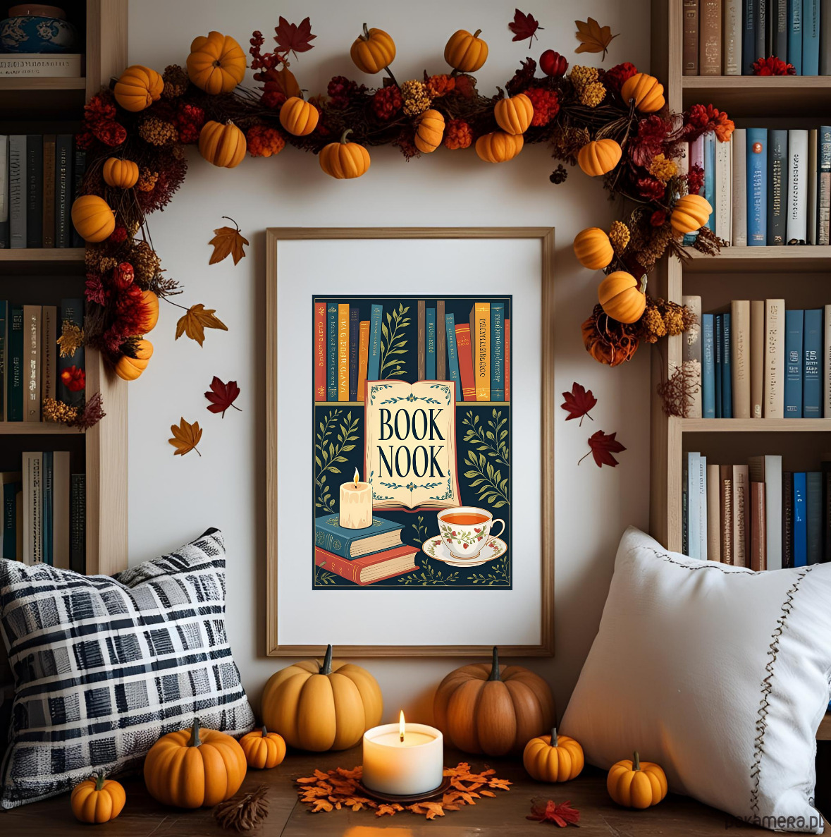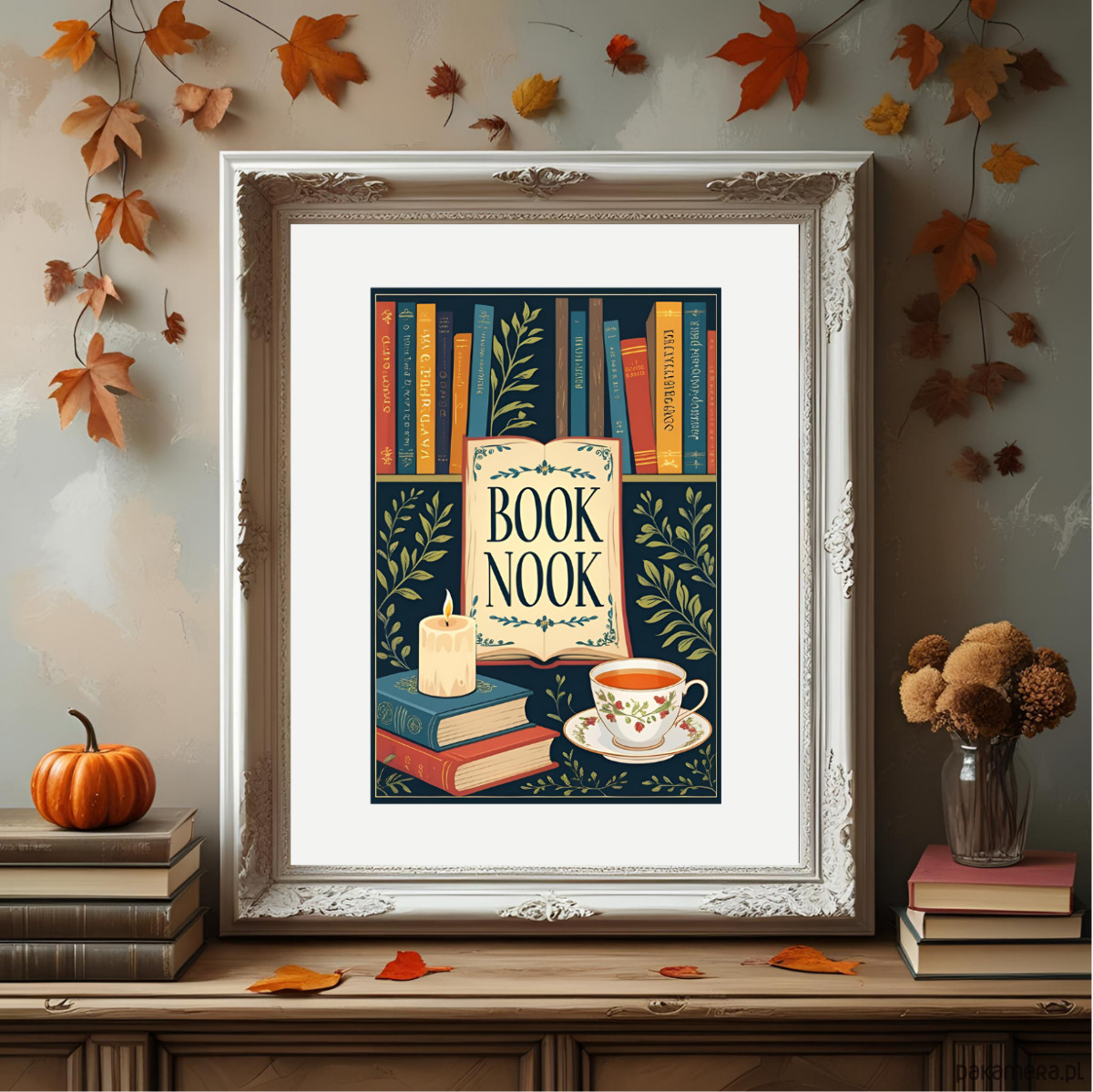Plakat z motywem książek BOOK NOOK.