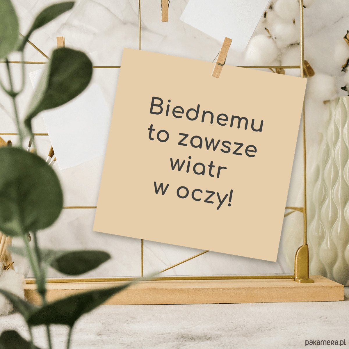 Plakat kwadratowy, Biednemu to zawsze wiatr w oczy