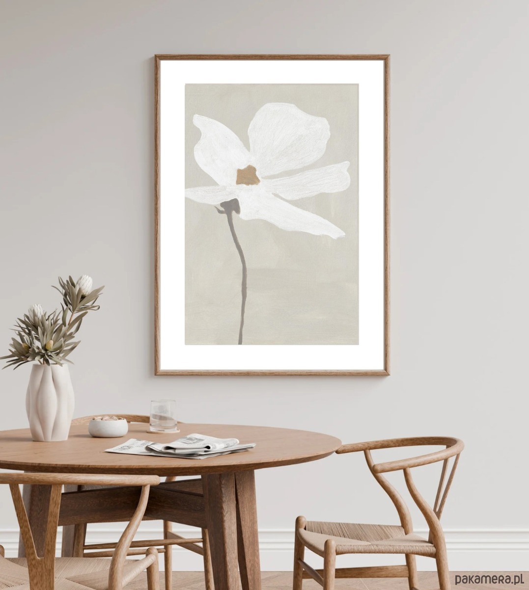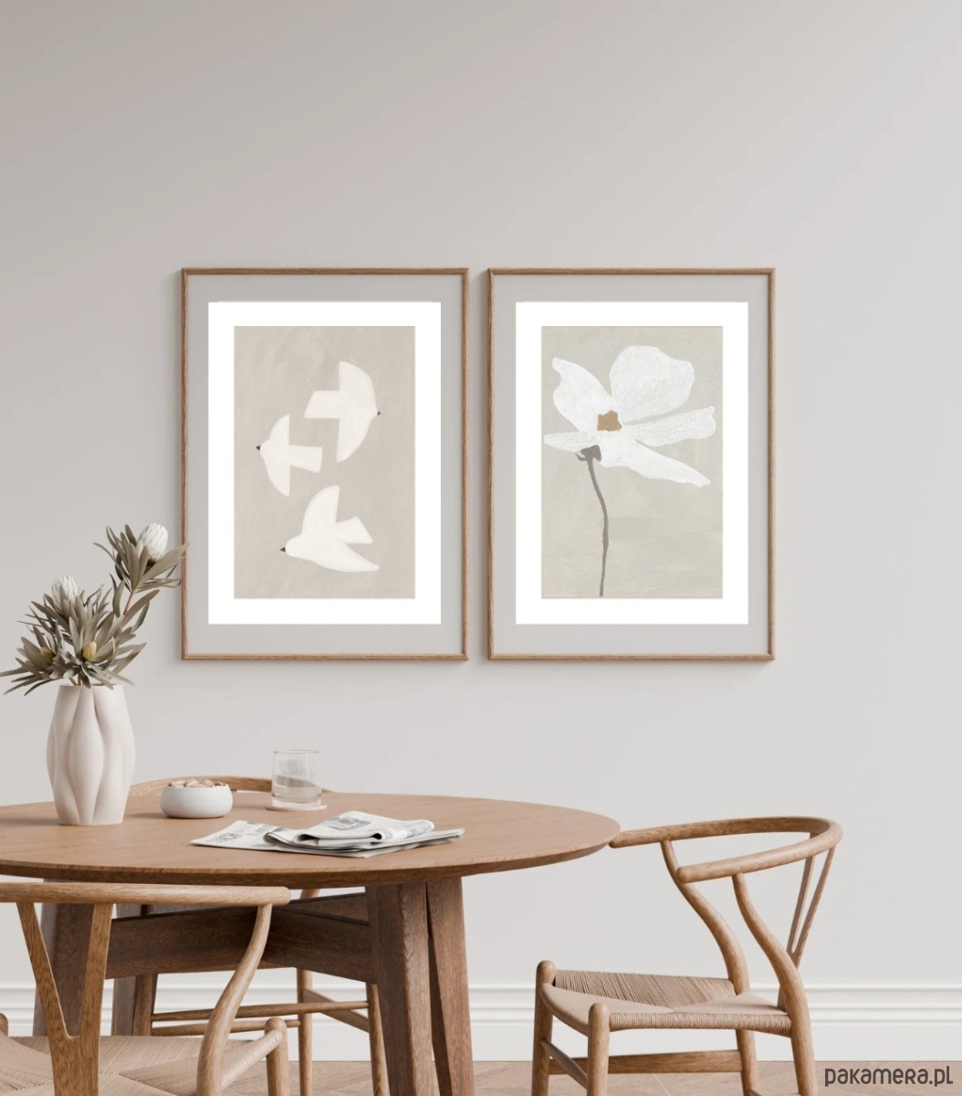 PLAKAT kwiat, dekoracja ścienna, szary obraz, minimalistyczna ozdoba