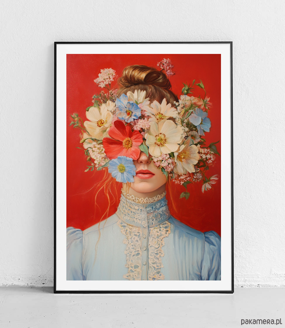 Plakat Kwiaty na czerwonym tle