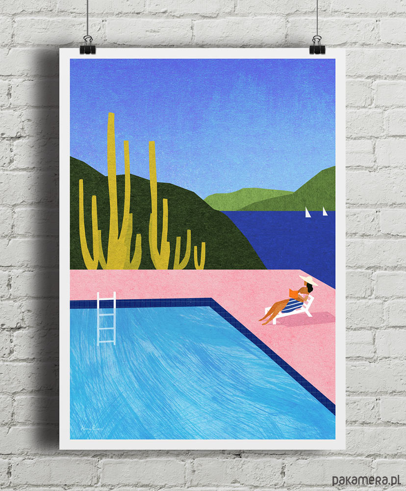 Plakat Lato nad basenem zabiera nas w magiczny czas spokoju. Lazurowa tafla wody, dzika przyroda na drugim planie i dziewczyna na leżaku z książką w ręku. Dla wszystkich spragnionych wakacyjnego wytchnienia obowiązkowy wystrój ścian.