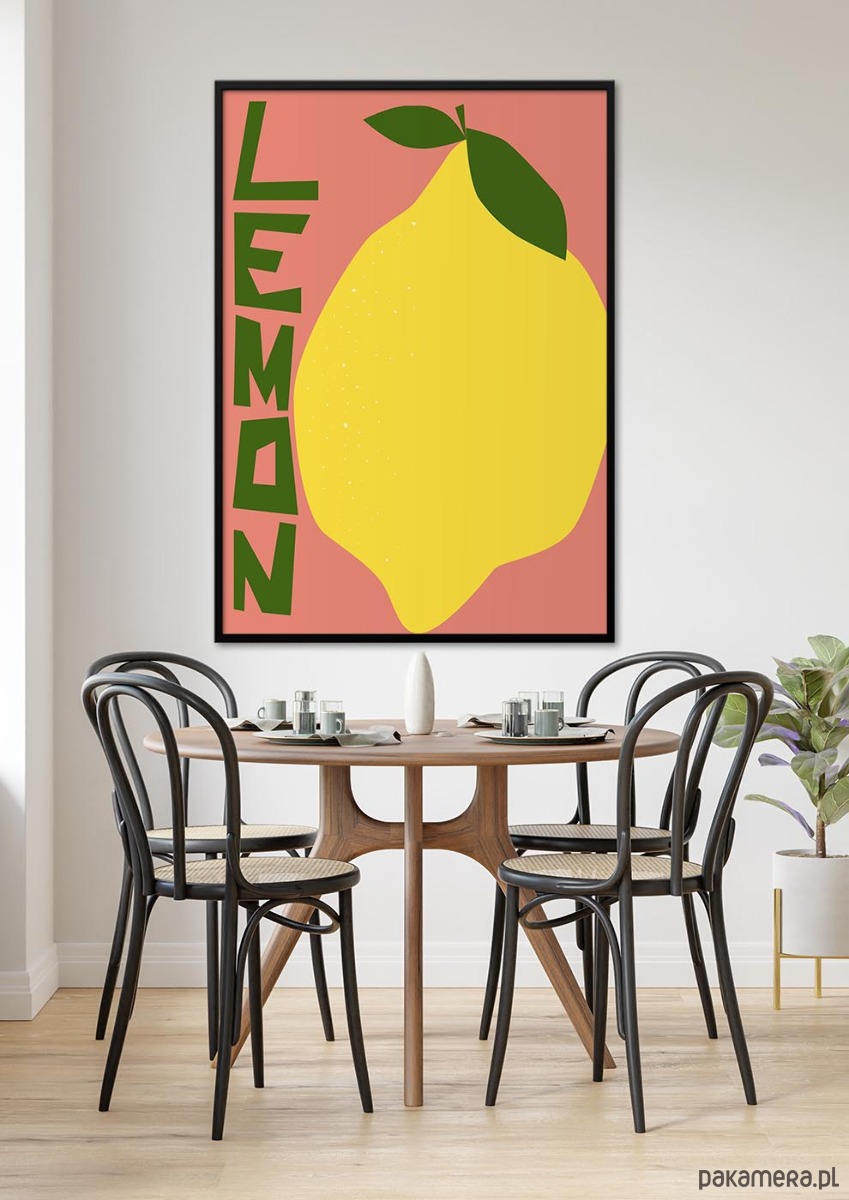 Plakat Cytryna/Lemon to nowoczesna ilustracja inspirowana naturą, utrzymana w minimalistycznej formie i intensywnej kolorystyce. Motyw cytryny w połączeniu z wyrazistą typografią nadaje wnętrzu świeżości, energii i designerskiego charakteru. Idealny do kuchni, salonu, biura oraz nowoczesnych przestrzeni komercyjnych.