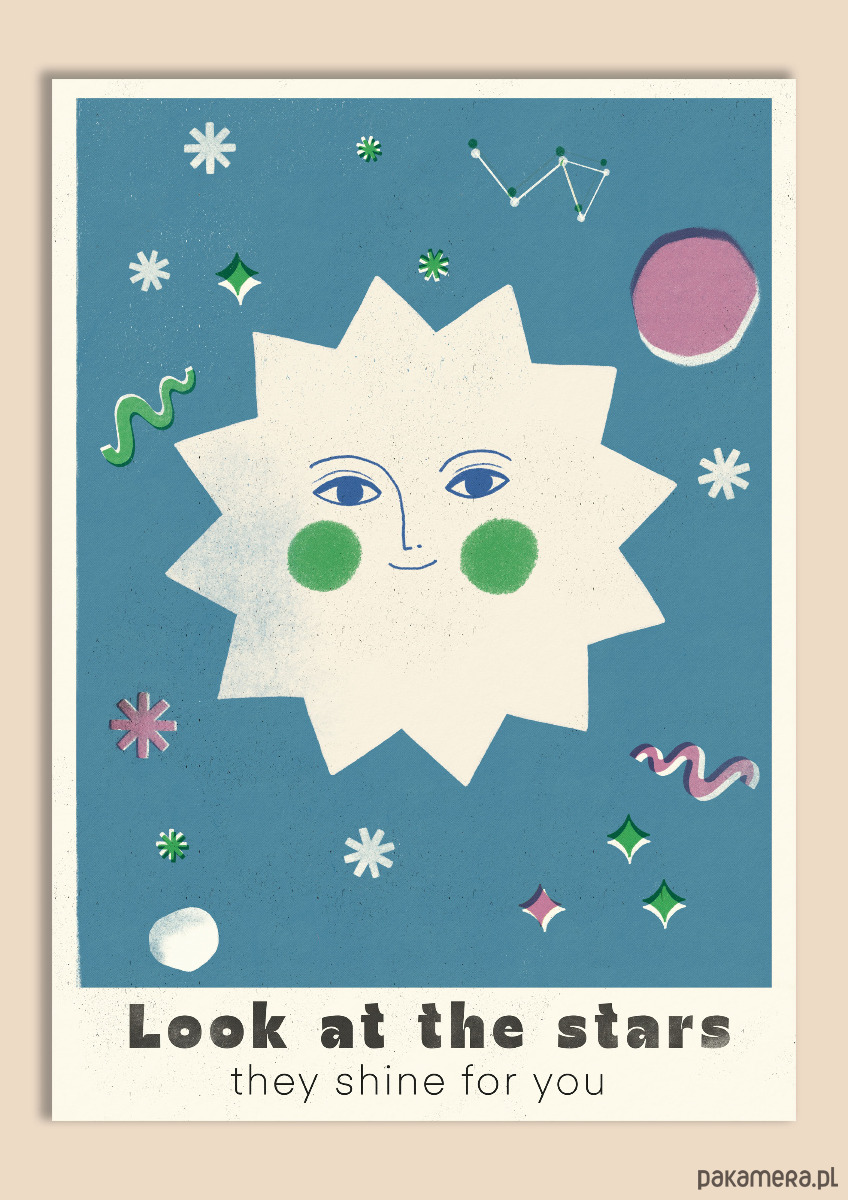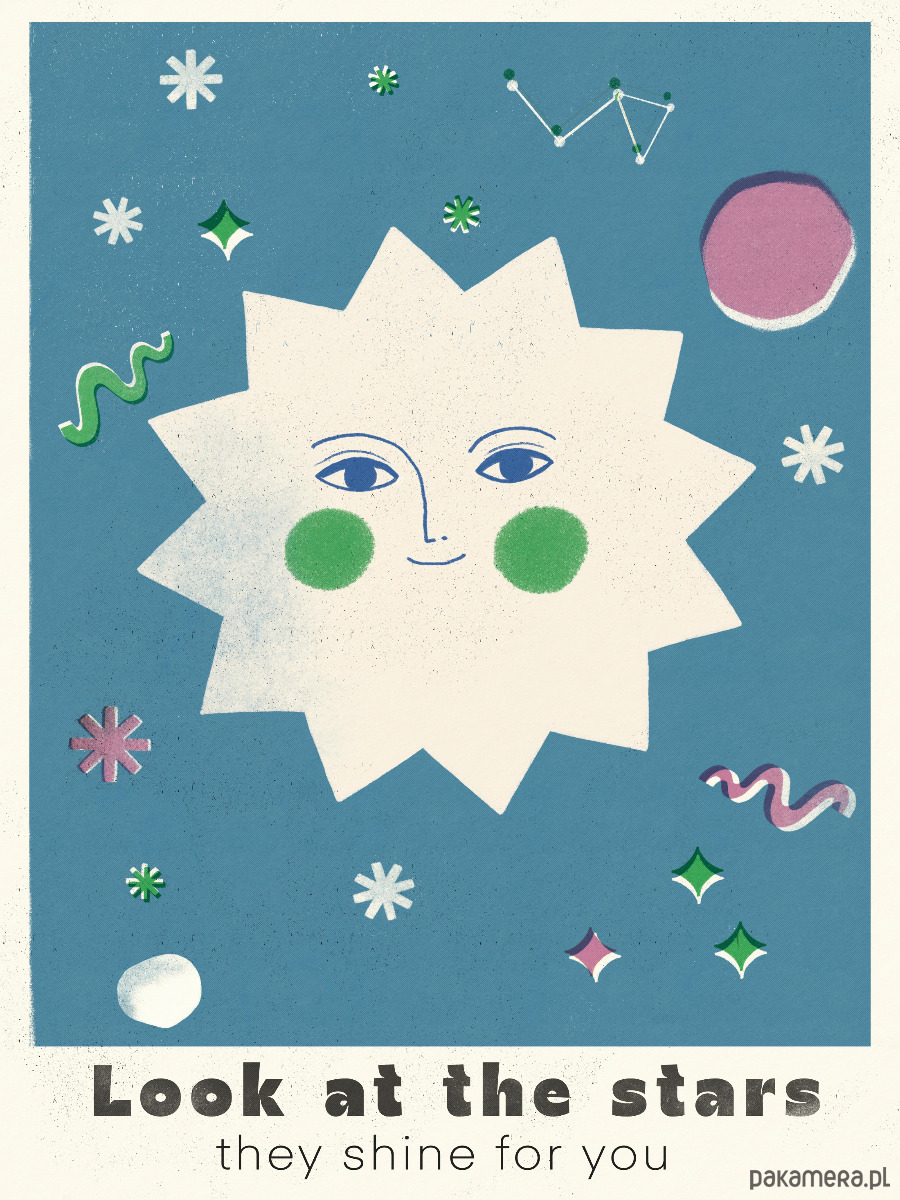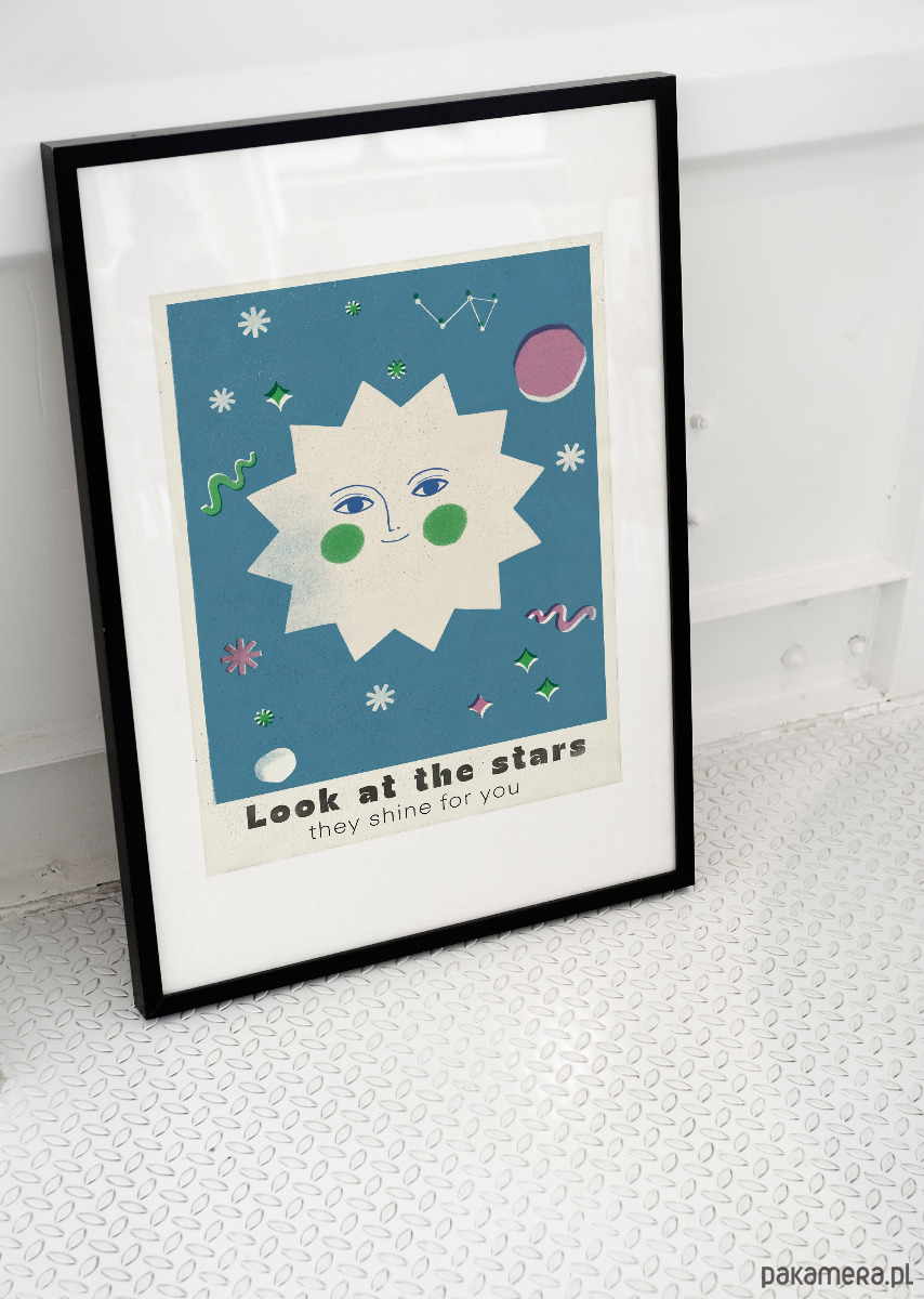 Cyfrowy wydruk autorskiej ilustracji. Zaprojektowany i wydrukowany w Polsce. Plakat geometryczny z retro charakterem.