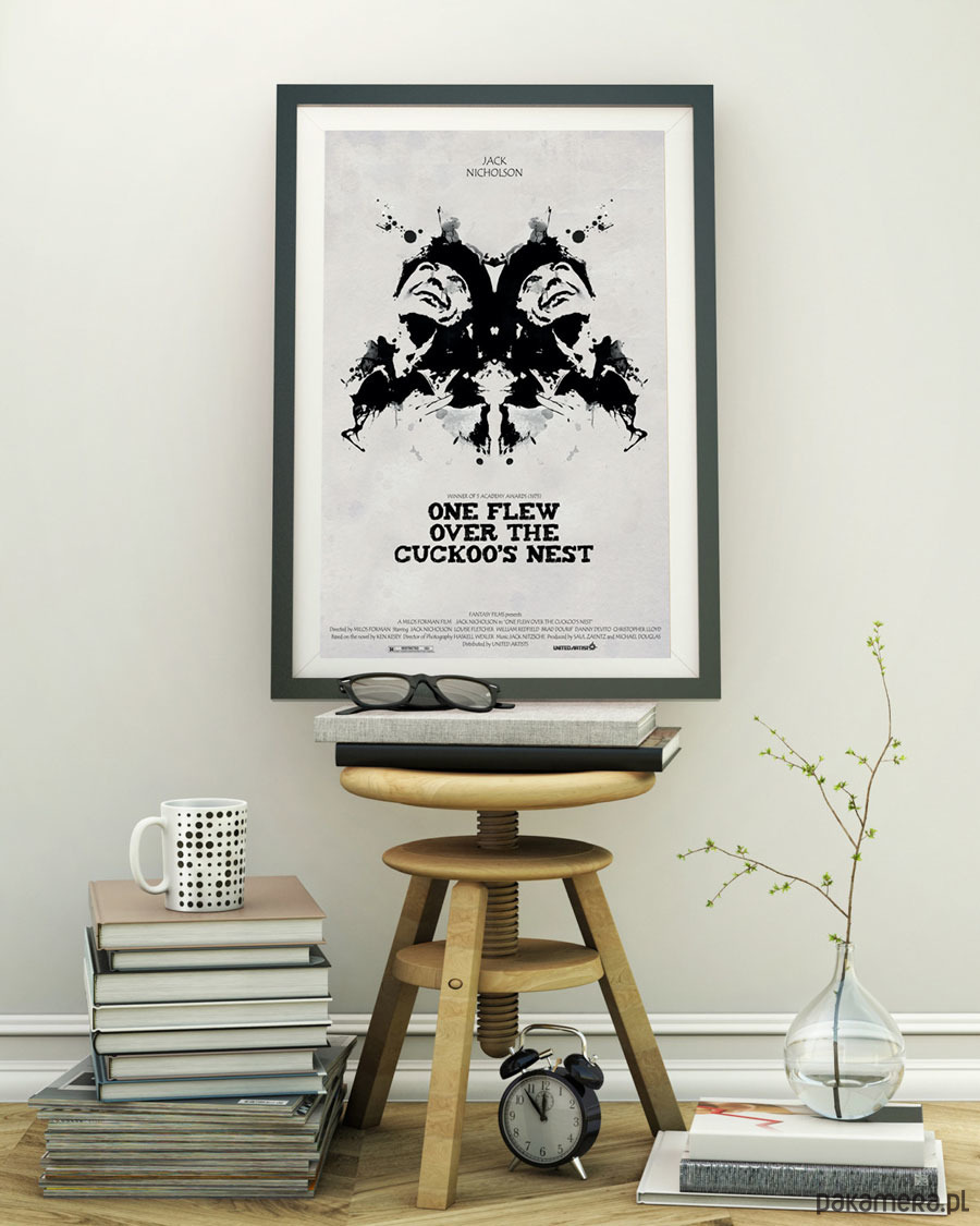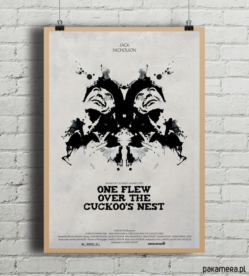 Plakat z autorską grafiką inspirowaną filmem Lot Nad Kukułczym Gniazdem (One Flew Over the Cuckoo's Nest), reż. Milos Forman.