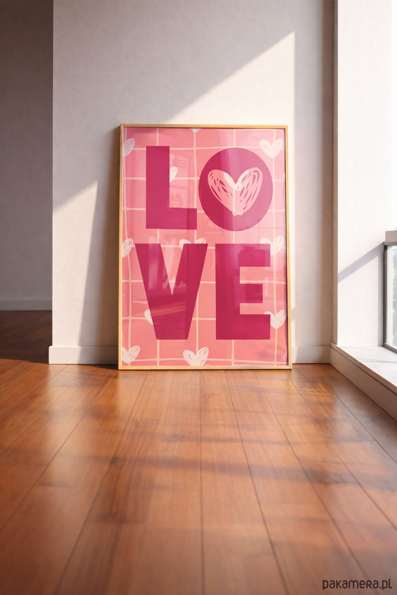 Wyrazisty plakat typograficzny w energetycznej palecie różu i czerwieni, który wnosi do wnętrza lekkość i świeżość. Ręcznie rysowane detale i geometryczna kompozycja tworzą nowoczesną formę z nutą swobody. To projekt, który przyciąga uwagę i nadaje przestrzeni wyrazisty charakter.