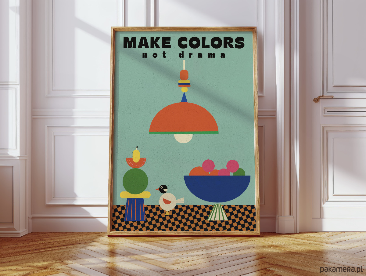 Cyfrowy wydruk autorskiej ilustracji. Zaprojektowany i wydrukowany w Polsce. Plakat z retro charakterem.