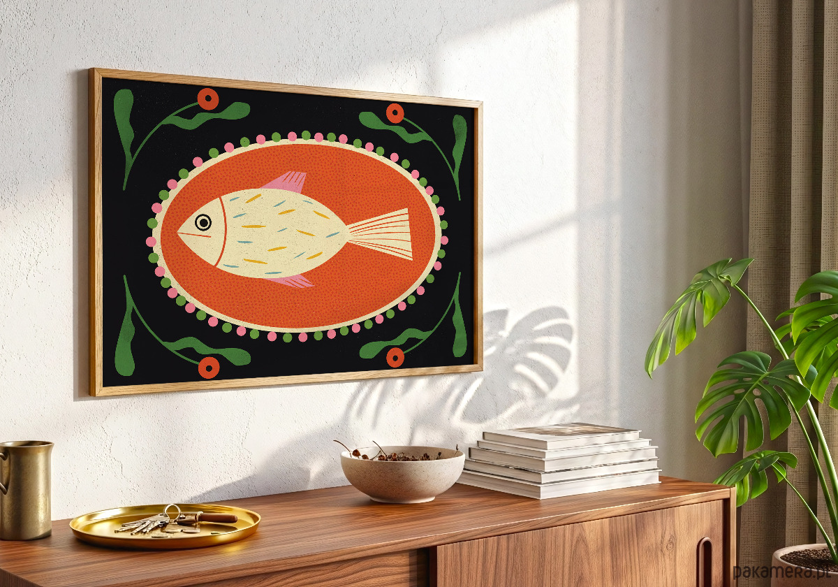 Cyfrowy wydruk autorskiej ilustracji. Zaprojektowany i wydrukowany w Polsce. Plakat z retro charakterem.