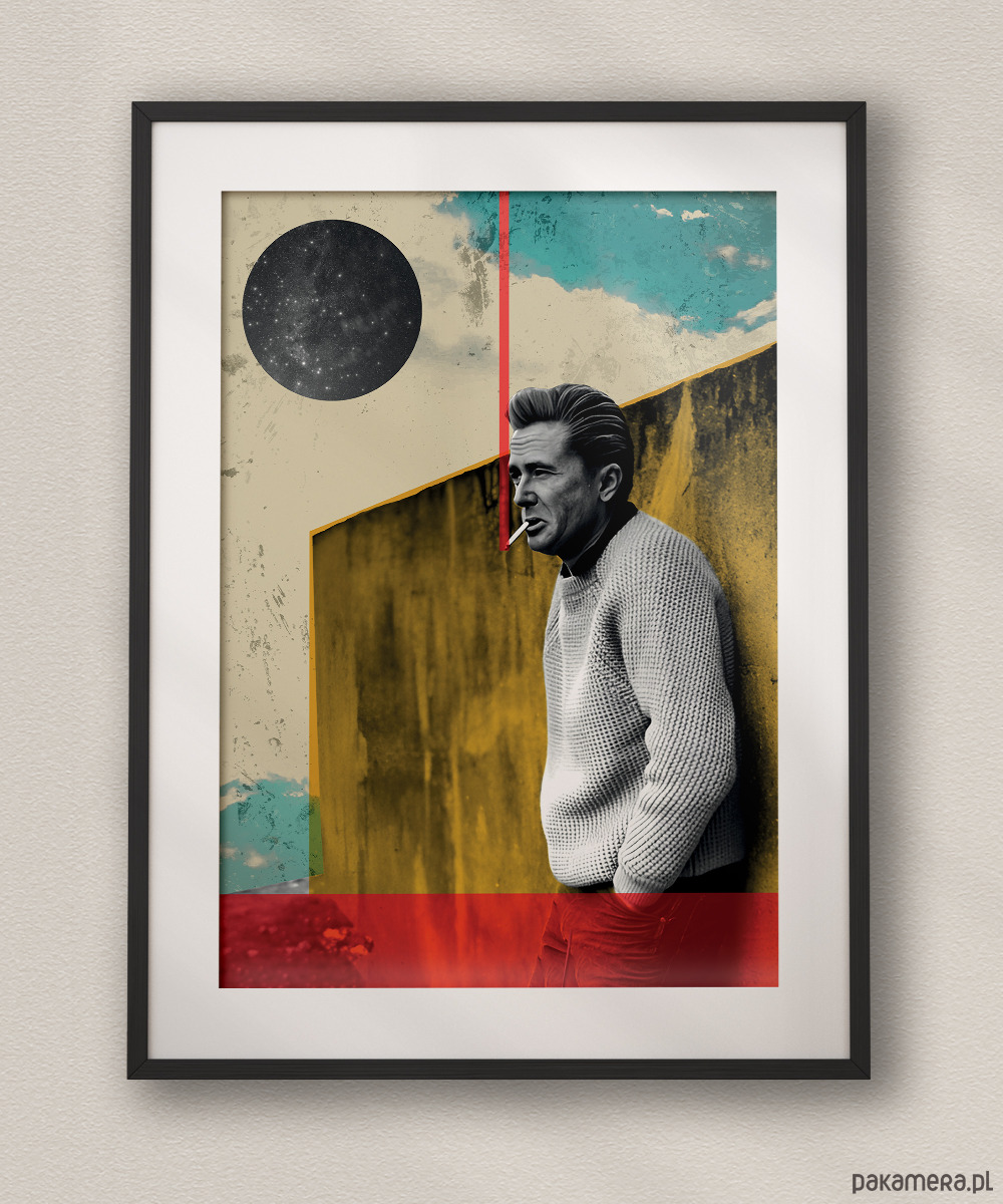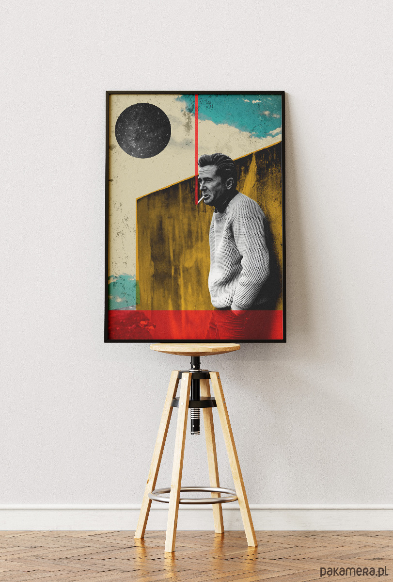 Plakat „Marek Hłasko” to hołd dla jednego z najważniejszych polskich pisarzy XX wieku. Utrzymany w klimacie retro kolażu, nawiązuje do buntowniczego ducha autora i jego najbardziej znanych książek: Piękni dwudziestoletni, Ósmy dzień tygodnia, Następny do raju. To wyjątkowa dekoracja dla miłośników literatury i polskiej kultury, świetny prezent dla fana książek, bibliotekarza czy kolekcjonera sztuki.