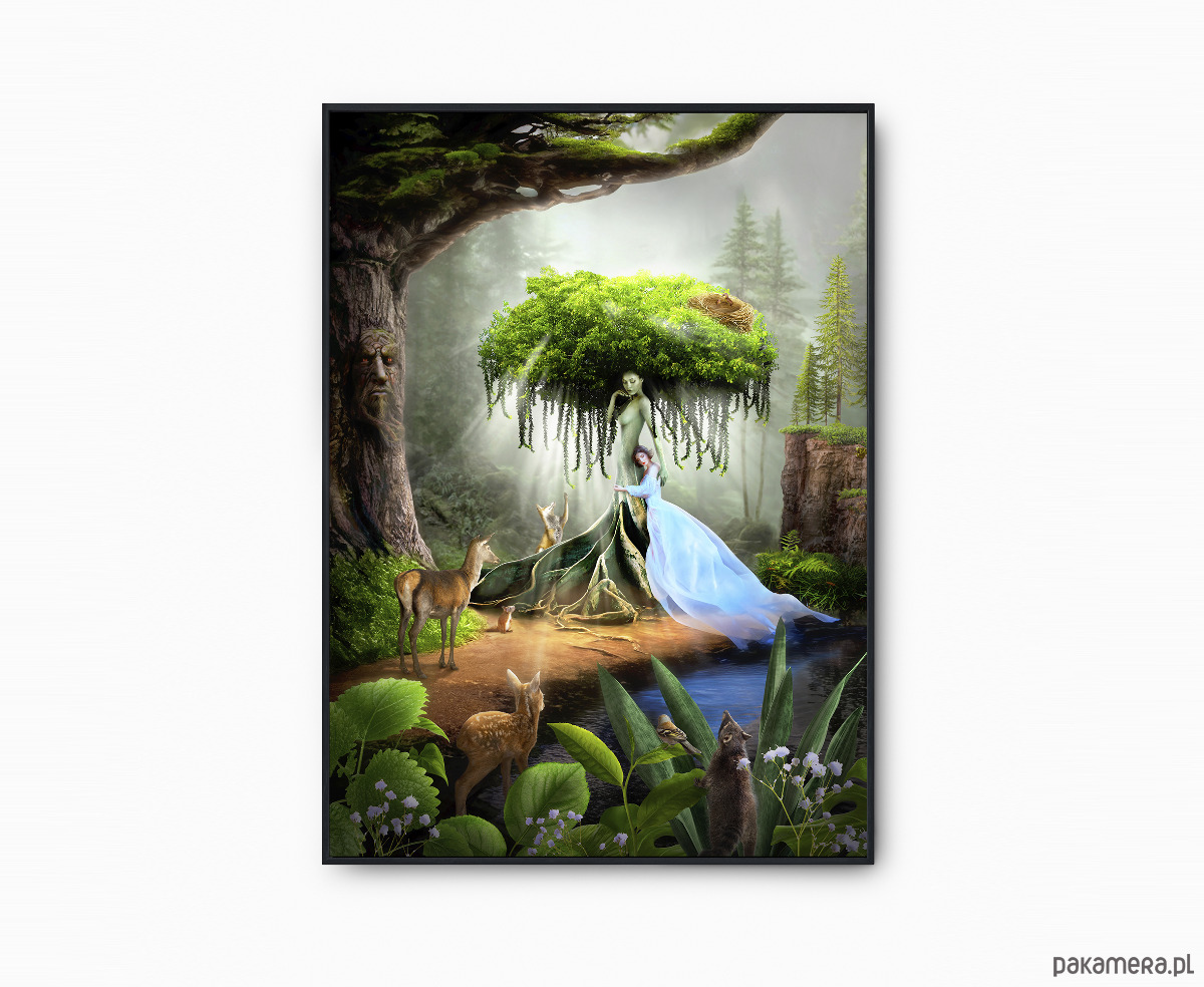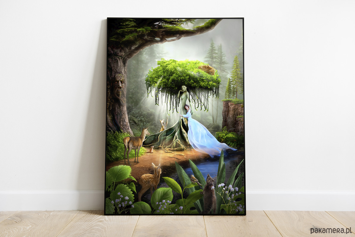 Przekształć swoje wnętrze dzięki urzekającemu kolażowi "Matka Natura" autorstwa Oli Radwan. To inspirowane surrealizmem dzieło sztuki to połączenie fantazji, natury i zwierzęcych motywów. Tworzy zachwycający punkt centralny w każdym pomieszczeniu. Wykonane z dbałością o każdy detal, zaprasza do odkrywania świata, w którym zieleń i fantastyczne stworzenia współistnieją w harmonii.