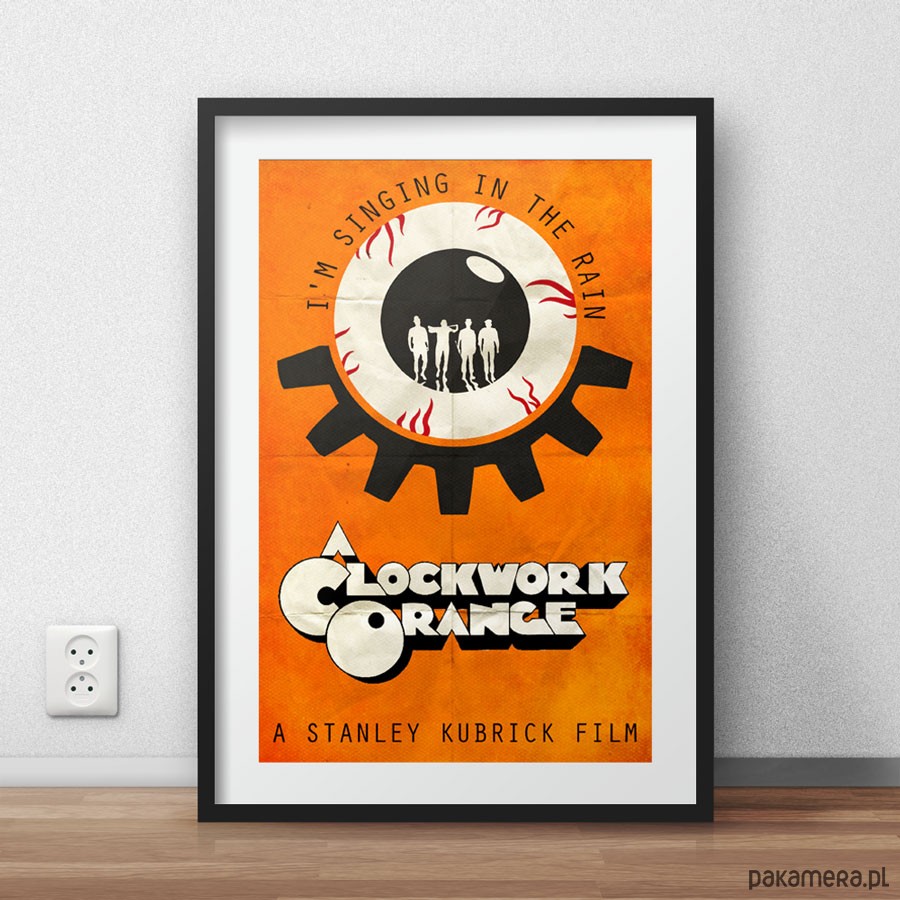 Plakat z autorską grafiką inspirowaną filmem "Mechaniczna Pomarańcza" (A Clockwork Orange) w reżyserii Stanleya Kubricka.