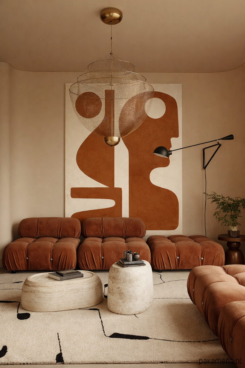 To dzieło, które łączy estetykę art deco z elementami współczesnej abstrakcji, nadając wnętrzu głębię i wyrafinowanie. Stylowy, ale pełen energii, wprowadza do przestrzeni poczucie spokoju, ale również wyrazistości. Idealny do wnętrz w stylu scandi, boho czy współczesnym minimalizmie.