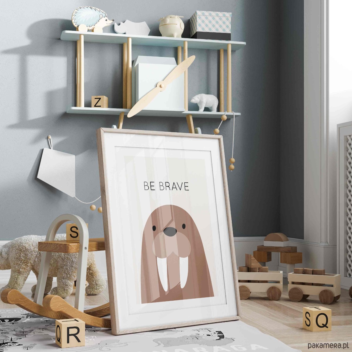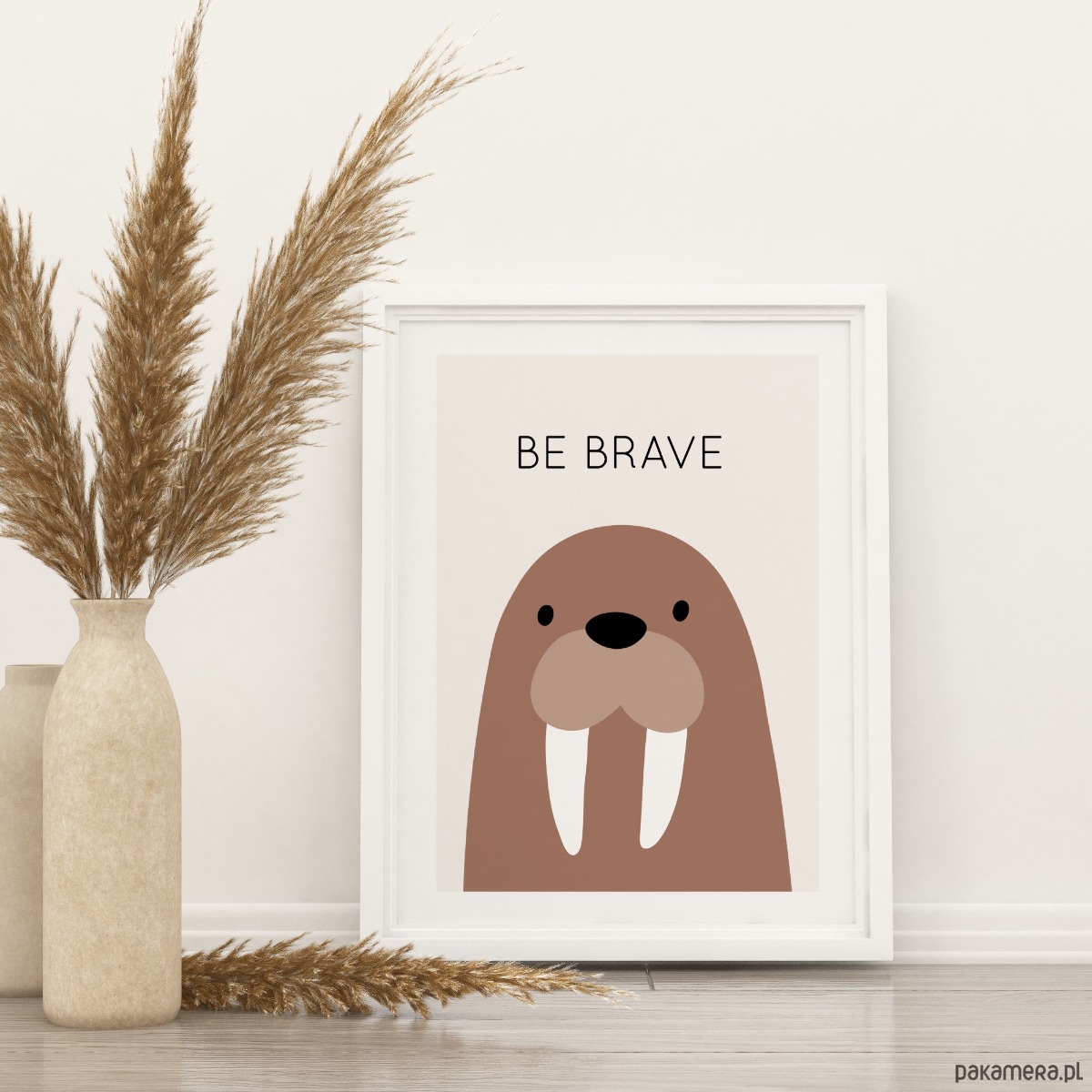 Przedstawiamy Państwu piękny plakat do dziecięcego pokoju z Morsem i napisem BE BRAVE.