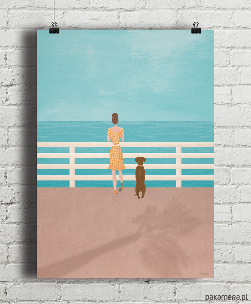 "Somewhere beyond the sea" - to tekst znanej piosenki, który doskonale opisuje nasz morski plakat. Wakacyjny plakat z morską promenadą przywodzi na myśl spokojne, leniwe popołudnie na wakacjach, gdy nigdzie nie trzeba się spieszyć, a każda chwila wydaje się pełna odprężenia.