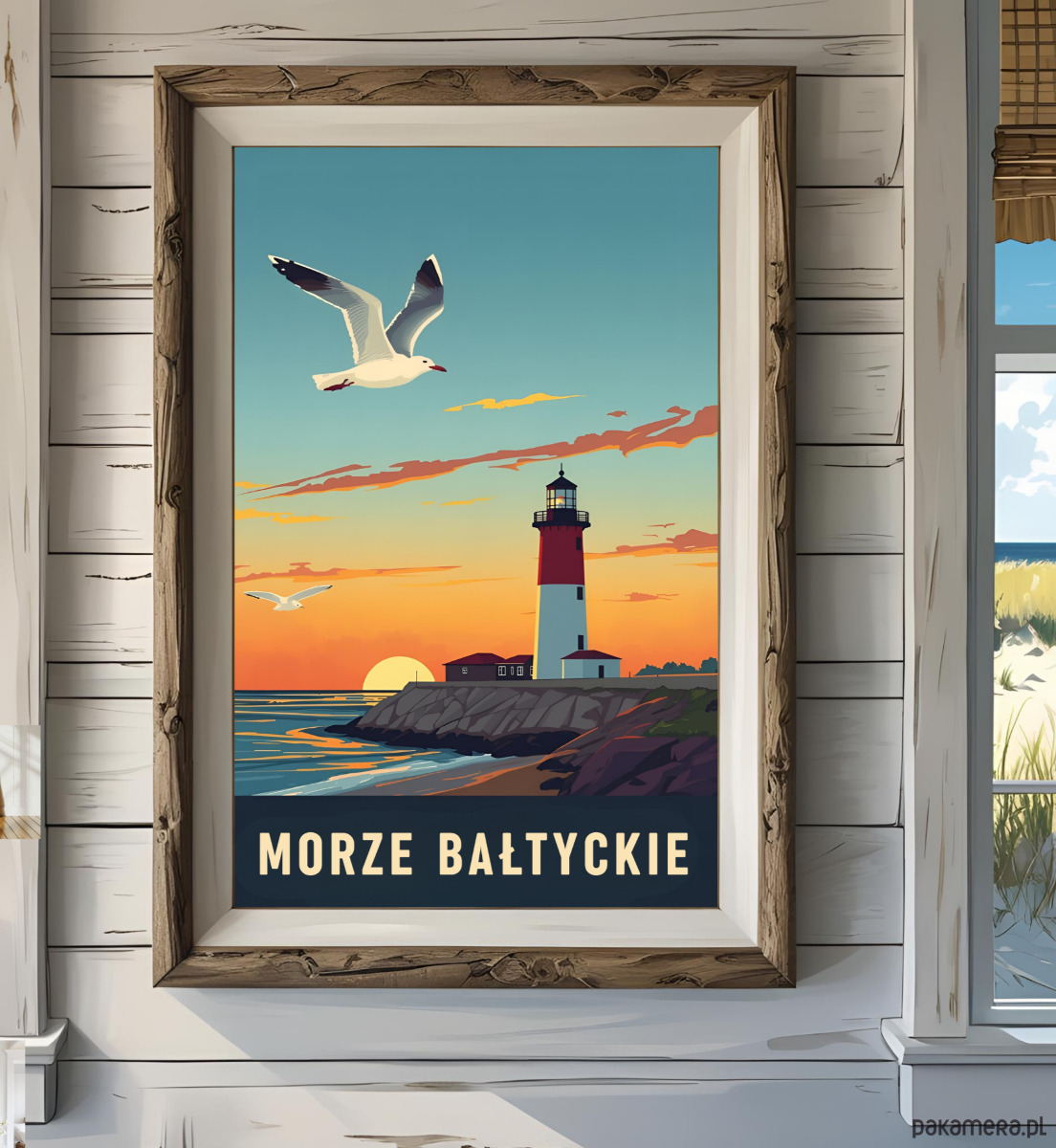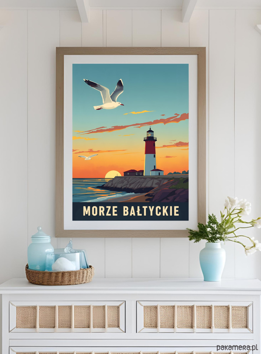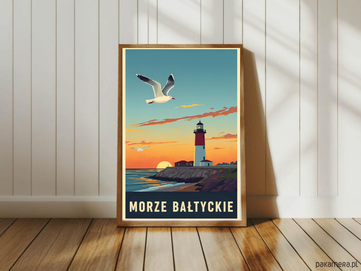 PLAKAT MORZE Bałtyckie, Bałtyk ilustracja retro