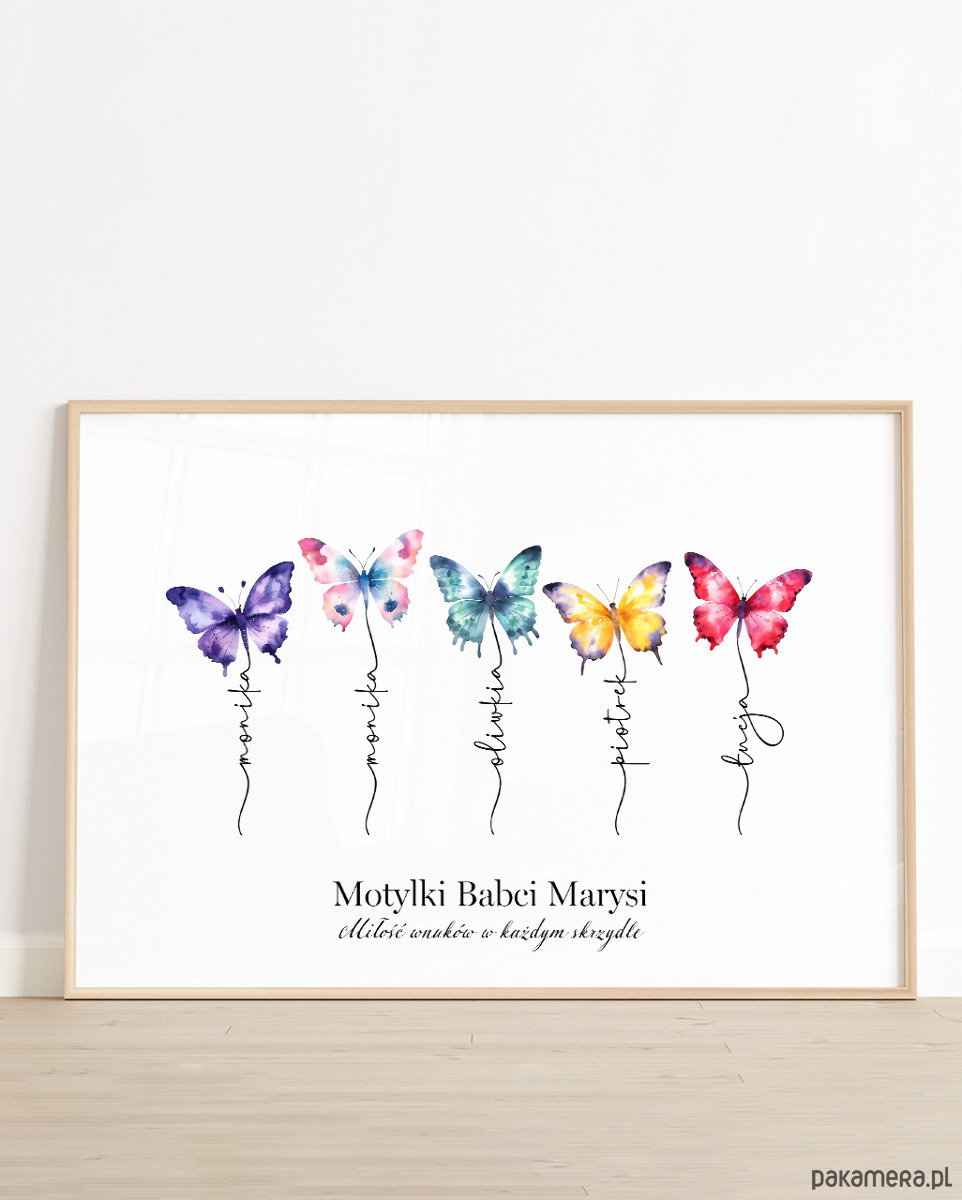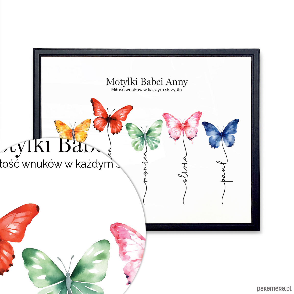 Plakat Motylki z Imionami Wnuków - prezent dla Babci