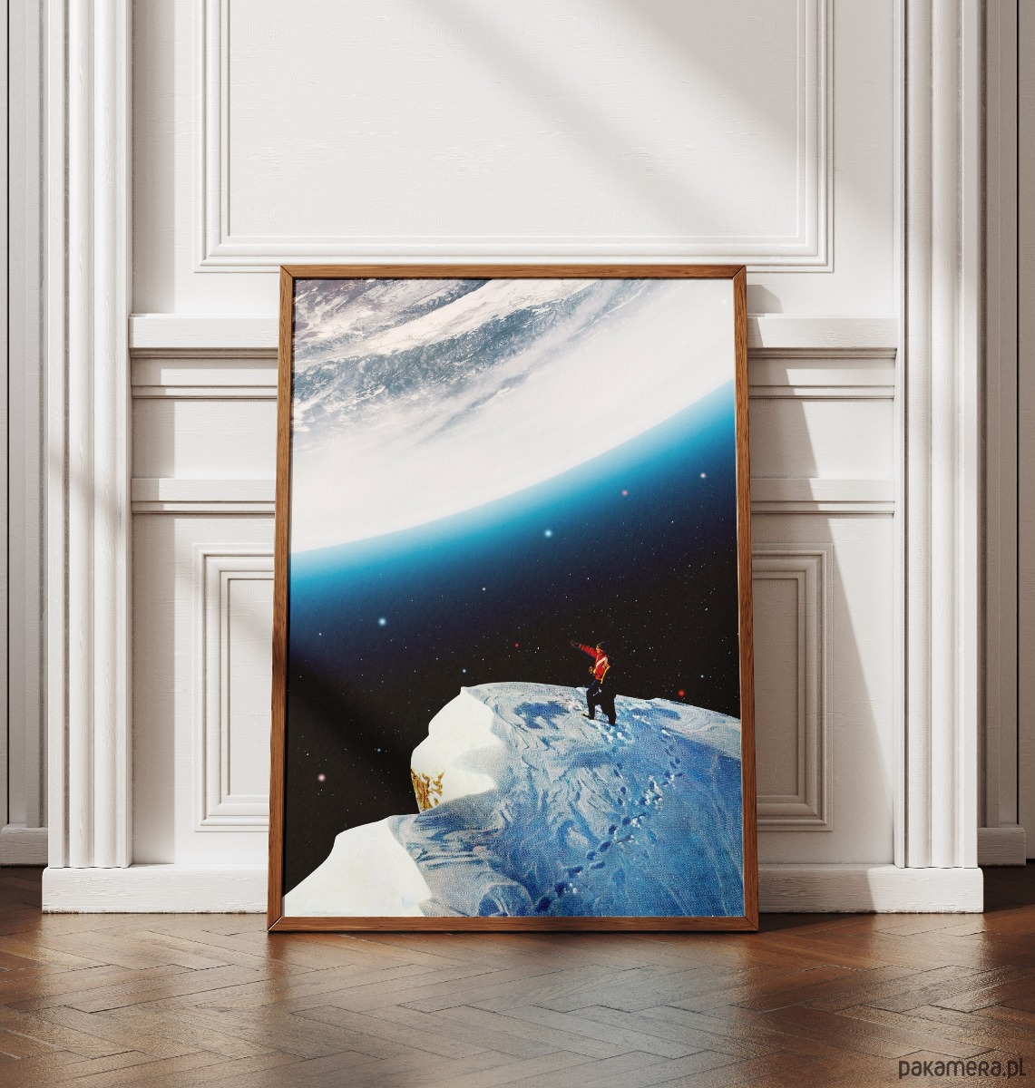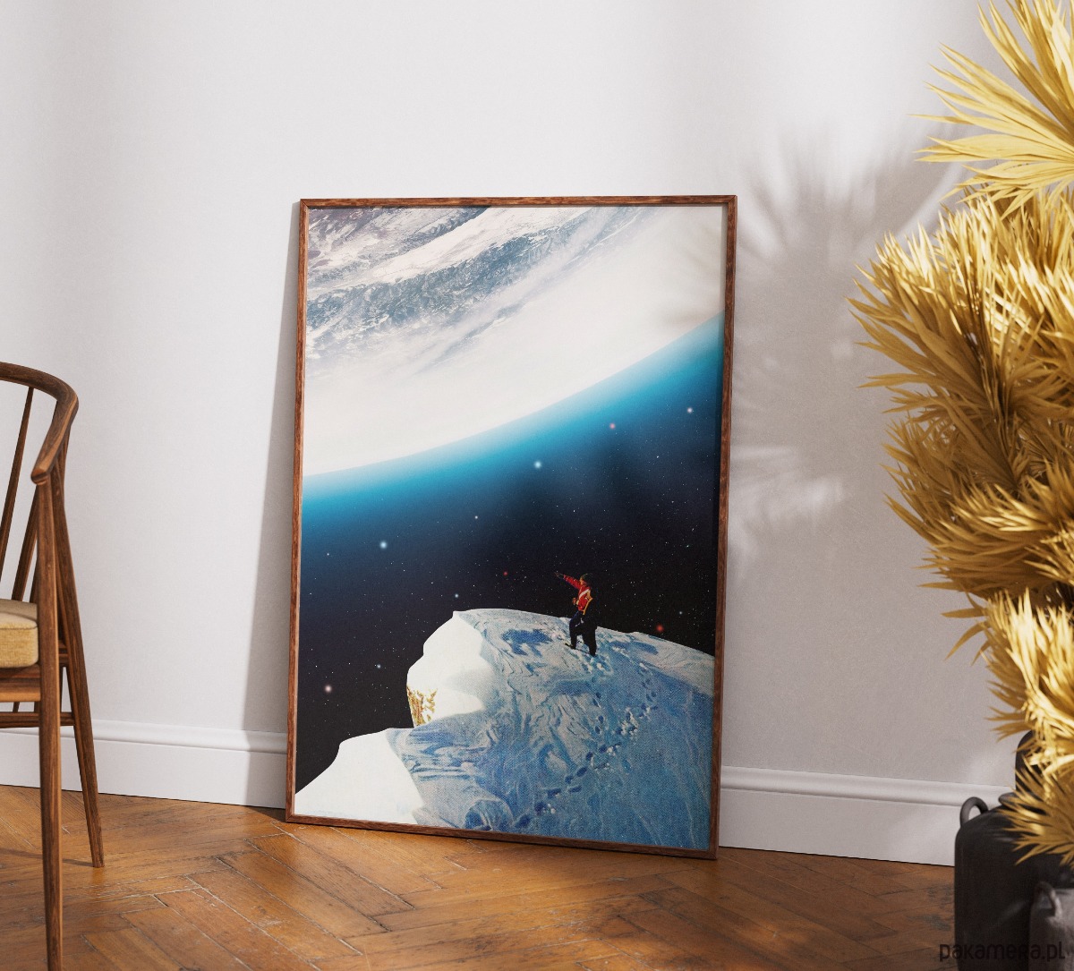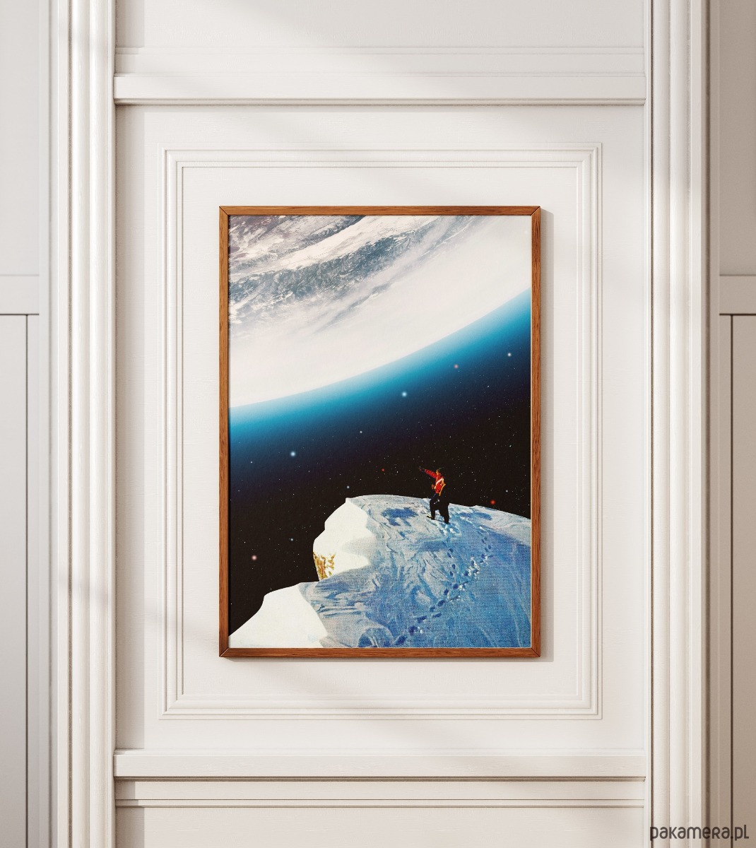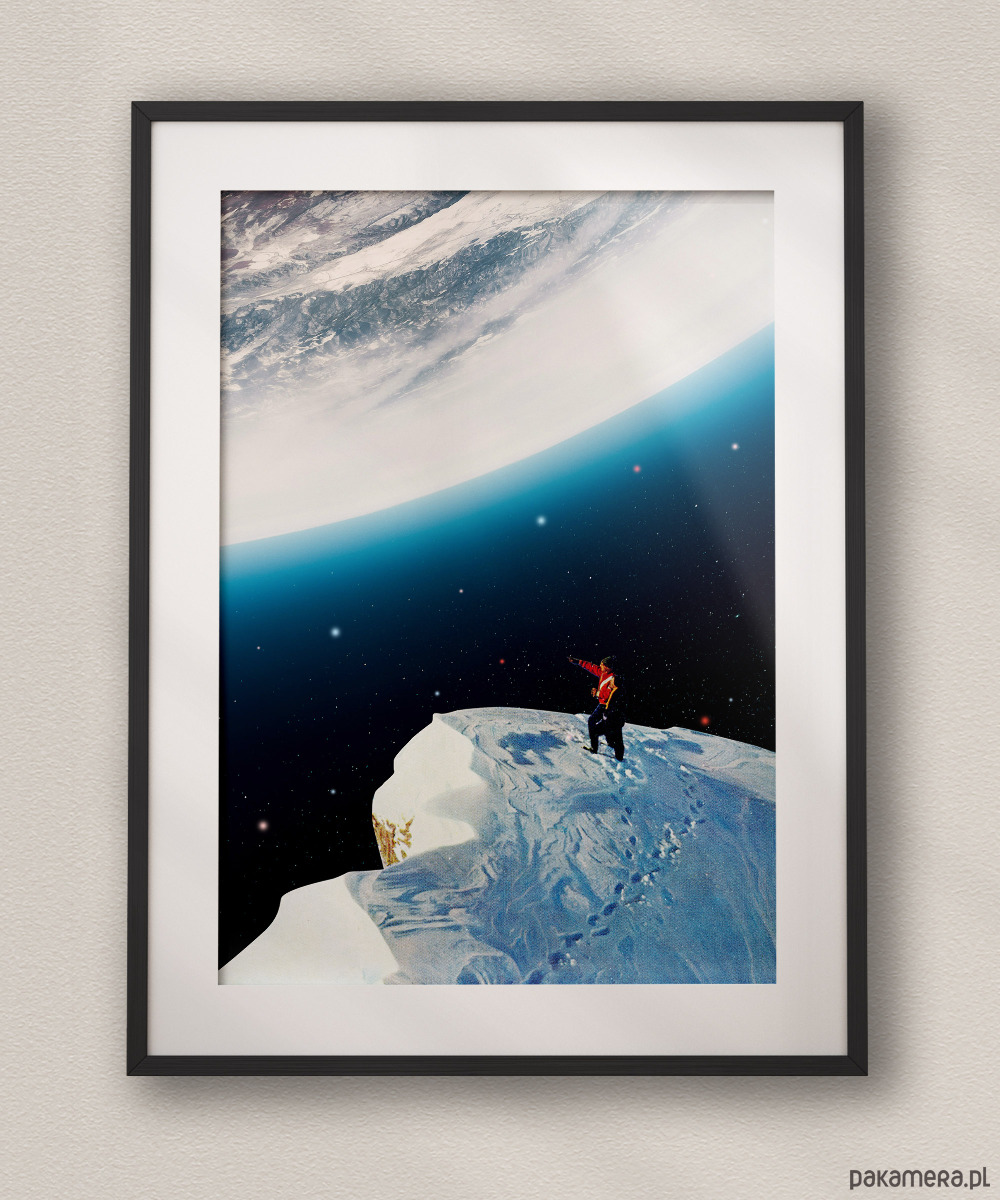Ten surrealistyczny kolaż to idealna propozycja dla marzycieli, odkrywców i fanów kosmicznej estetyki. Dzięki mistycznemu połączeniu górskiego szczytu z widokiem na gigantyczną planetę, genialnie sprawdzi się w nowoczesnym salonie, sypialni czy domowym biurze, wnosząc do nich atmosferę spokoju, tajemnicy i nieograniczonej przestrzeni. To grafika dla tych, którzy w sztuce szukają inspiracji i chcą mieć na ścianie przypomnienie, że niemożliwe nie istnieje. Doskonale pasuje do wnętrz minimalistycznych, skandynawskich oraz loftów, stając się ich centralnym, przyciągającym wzrok punktem.