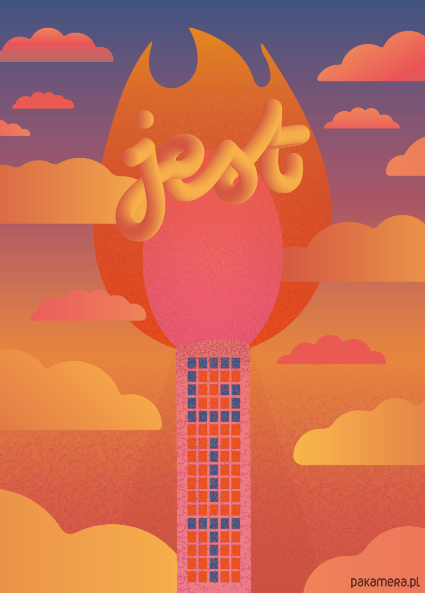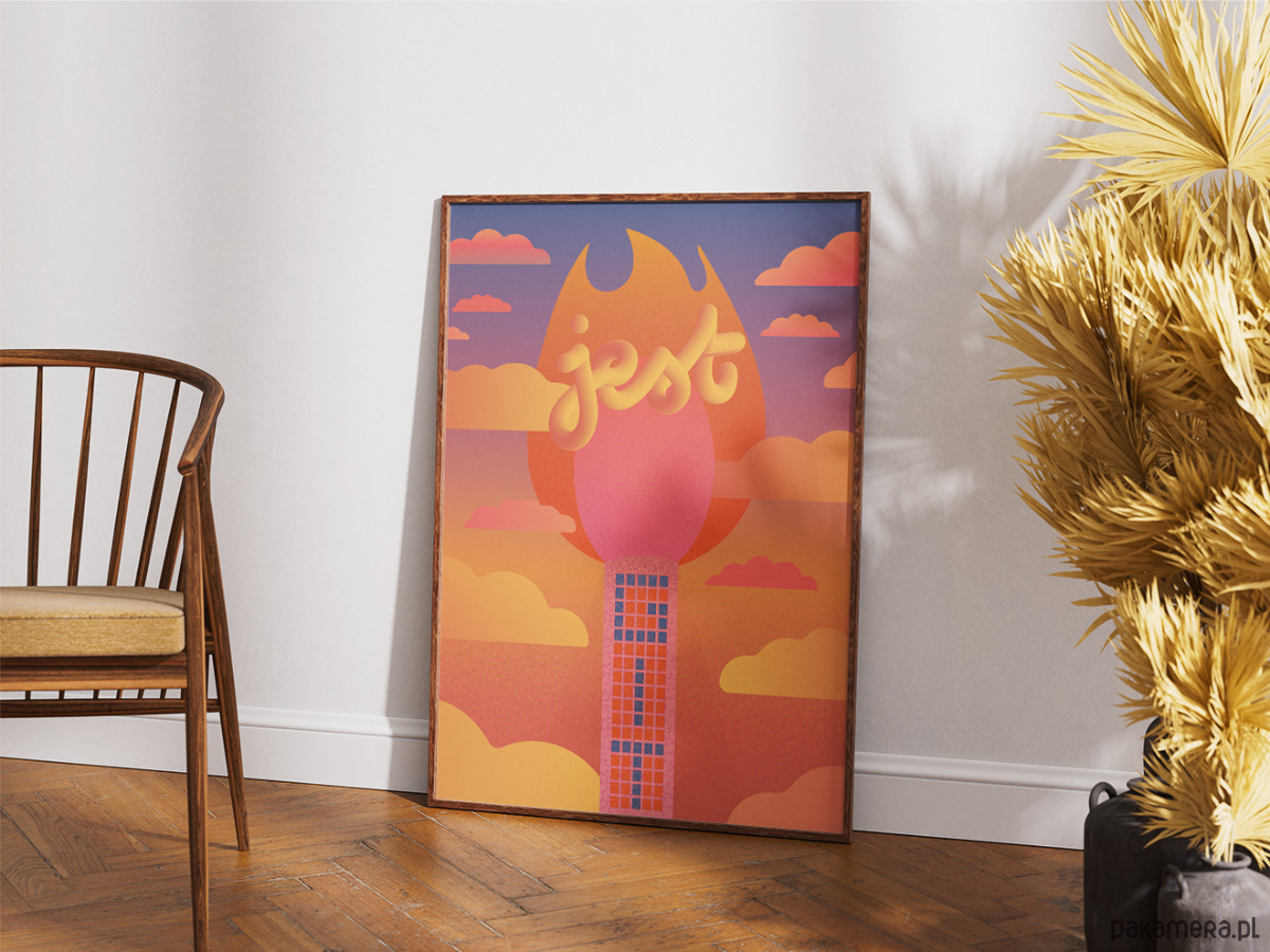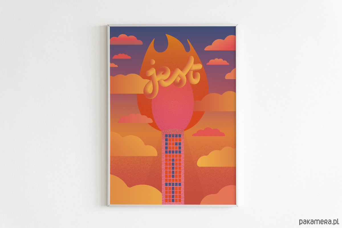 Plakat w cieplutkim odcieniu. Dla miłośnika architektury PRL.