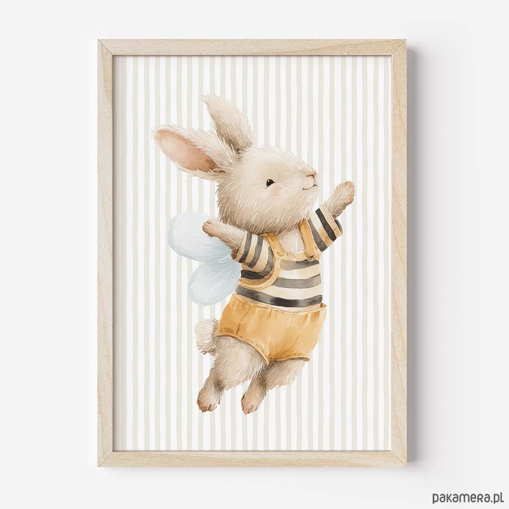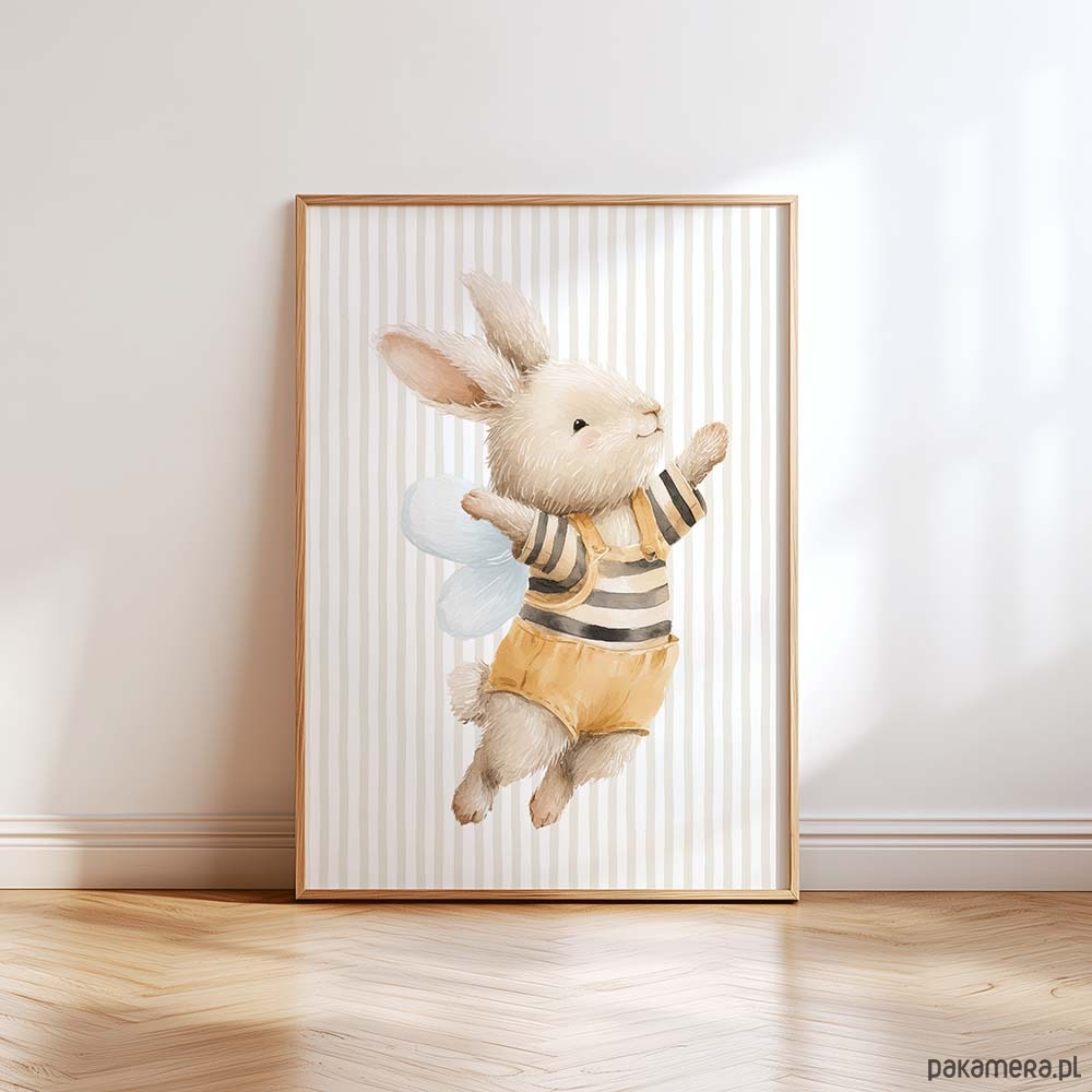 Urocza kolekcja plakatów dla dzieci ze zwierzątkami przebranymi za pszczółki to wyjątkowa dekoracja do pokoju niemowlaka, przedszkolaka i małego dziecka. Delikatne, bajkowe ilustracje łączą w sobie ciepły, dziecięcy styl z modnym motywem zwierzątek i pszczółek, tworząc przytulną atmosferę w pokoju dziecka. Plakaty świetnie pasują do wnętrz w stylu boho, skandynawskim, leśnym i pastelowym. To idealny wybór do dekoracji nad łóżeczko, komodę lub kącik zabaw. Kolekcja ze zwierzątkami w kostiumach pszczółek sprawdzi się jako ozdoba pokoju chłopca, dziewczynki oraz jako pomysł na prezent na baby shower, narodziny lub urodziny dziecka.