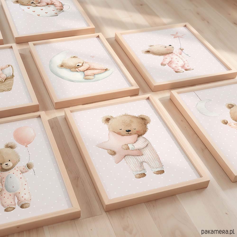 Plakat Na Ścianę Dla Dziewczynki Różowe misie nr. 1