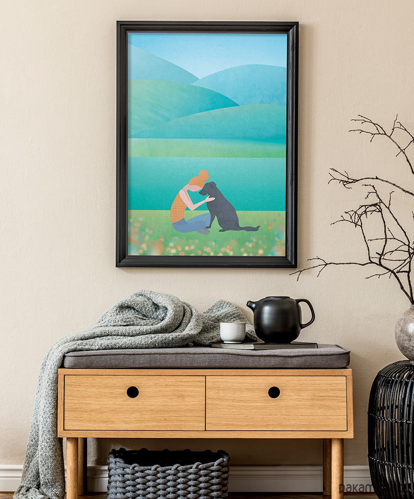 Plakaty z oryginalnymi grafikami minimalmill nadają wnętrzu inspirującego charakteru. Idealna dekoracja dla każdego, kto ceni sobie nowoczesny design, prostotę i wymowność. Śliczny akcent dekoracyjny w domu każdego miłośnika psów i spacerów.
